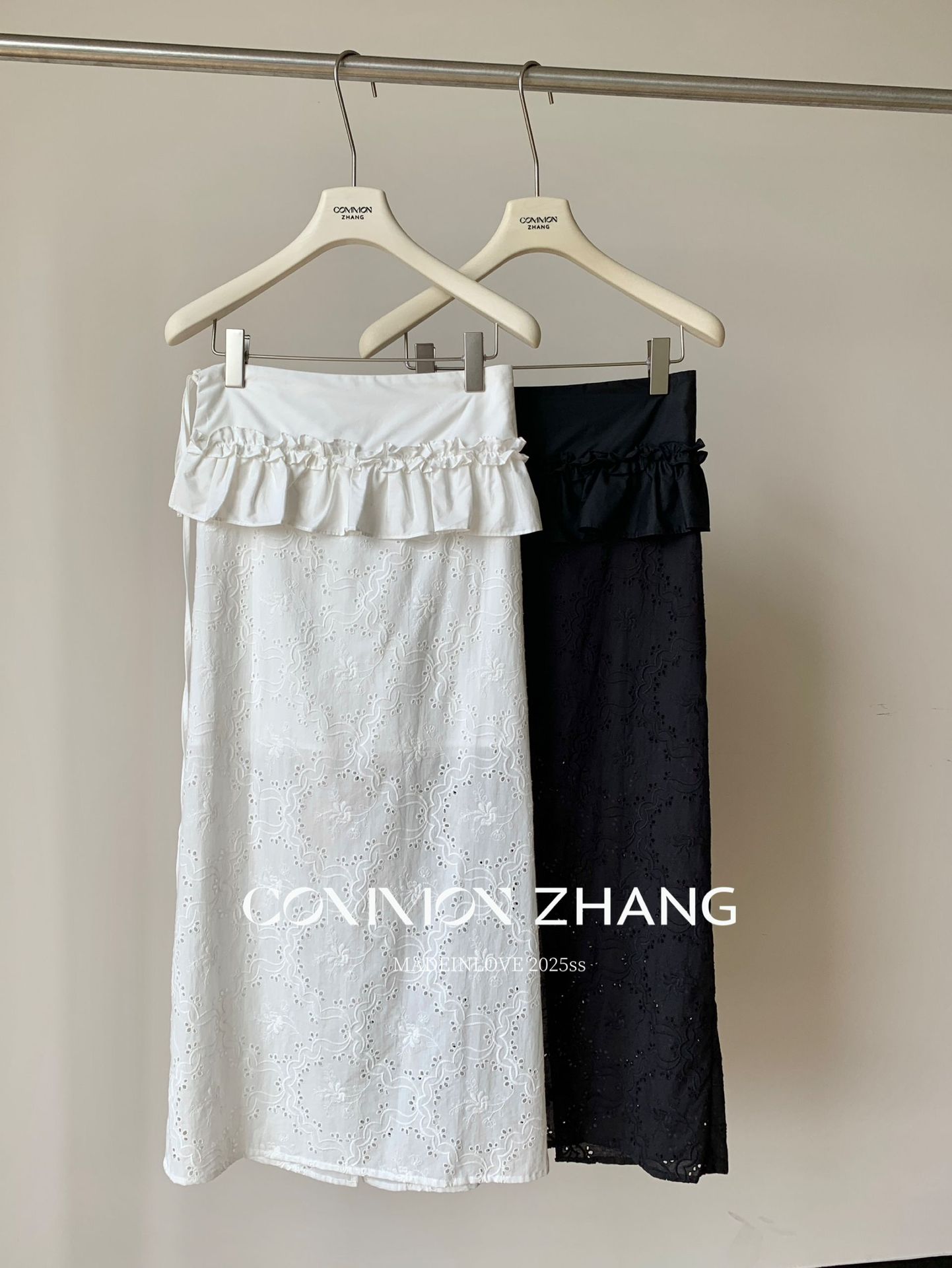 CZ ZHANG Summer French lace slightly translucent texture lace curtain spliced straight A-line skirt B12425