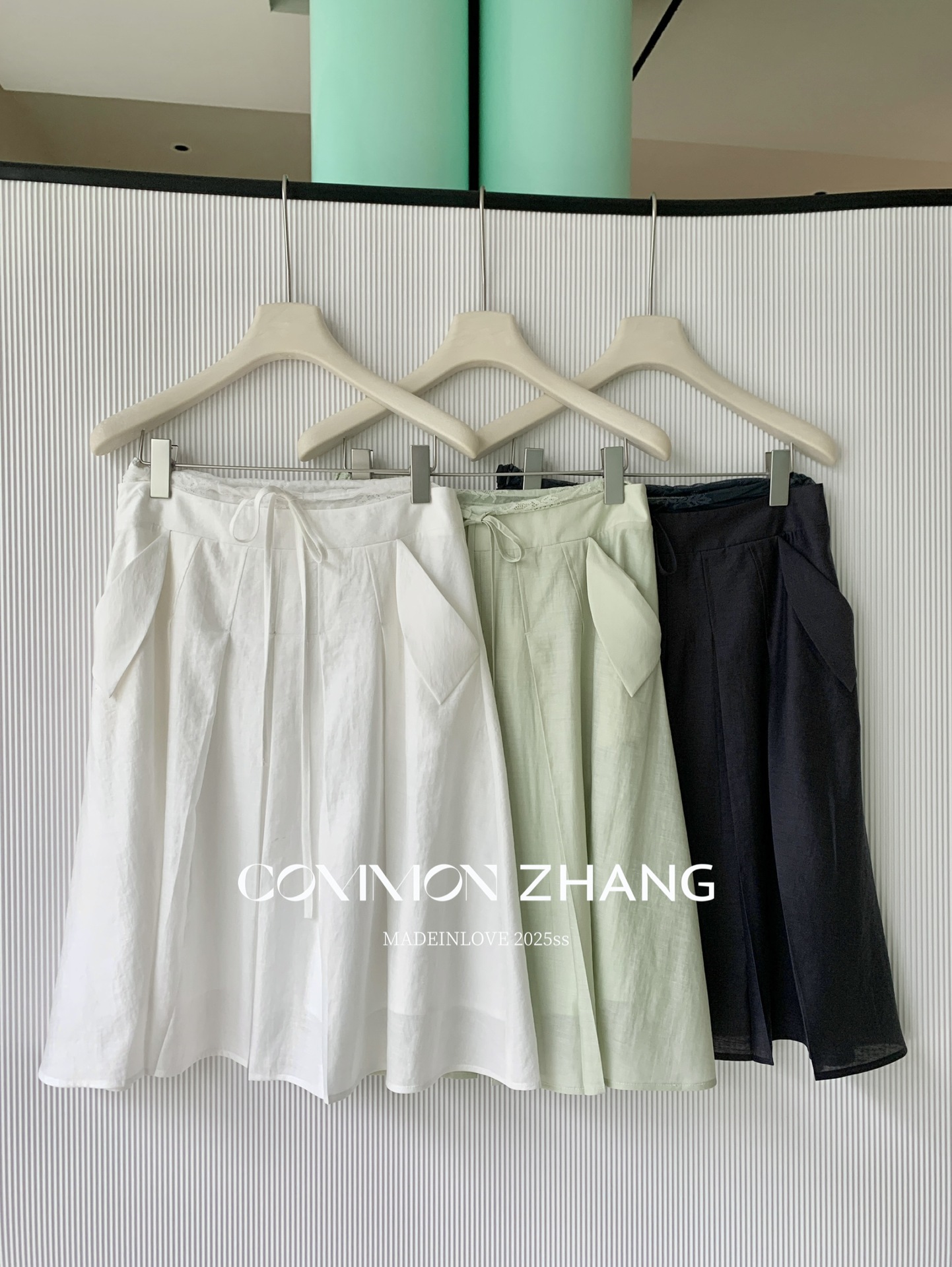 CZ ZHANG Summer French lace-up waist Tencel solid color low-waist A-line pleated skirt B22859