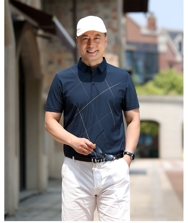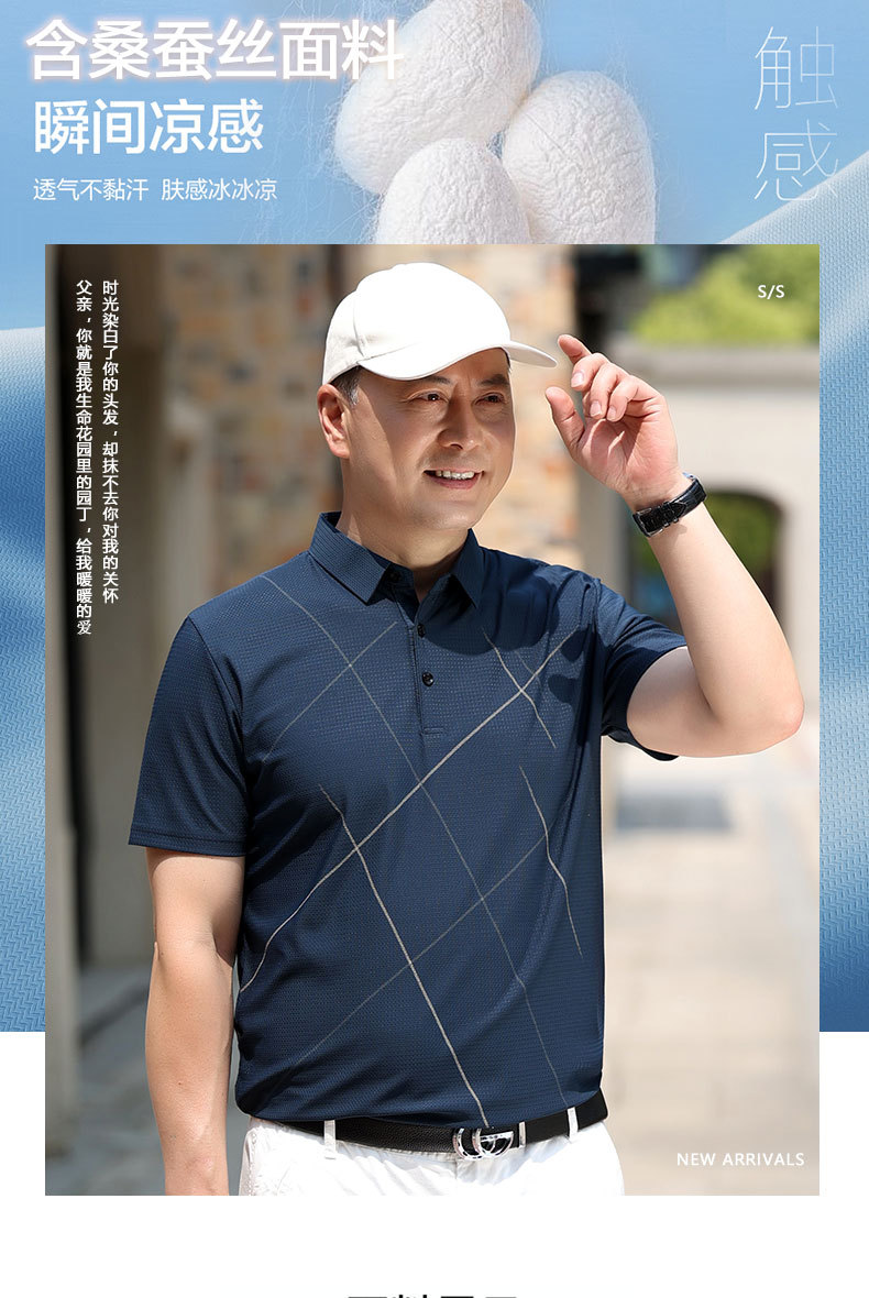 Dad's summer short-sleeved T-shirt, 60-year-old and 70-year-old grandpa's clothes for middle-aged and elderly people, men's thin polo shirt, summer top