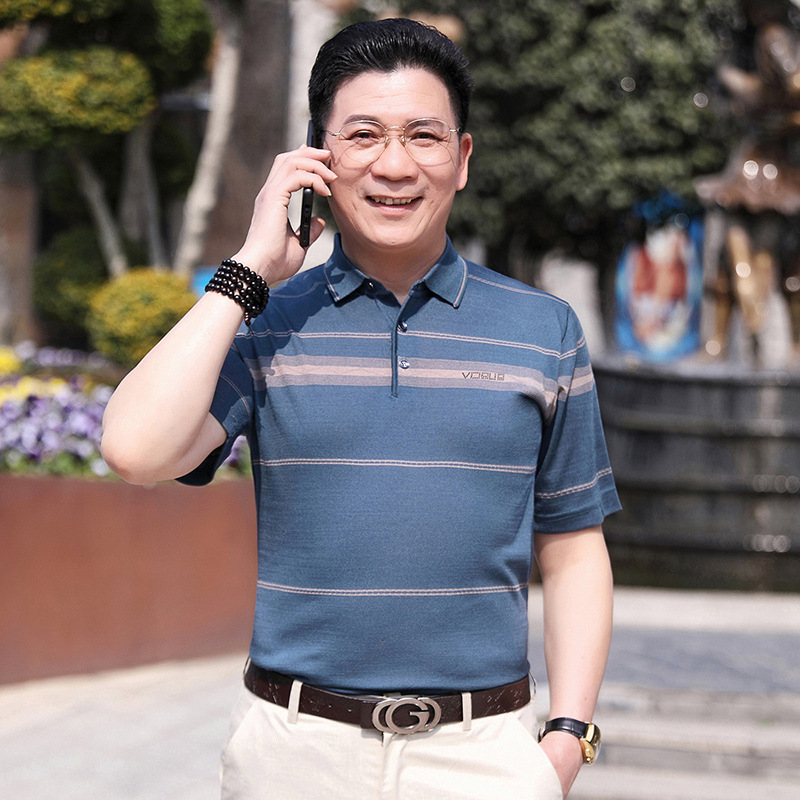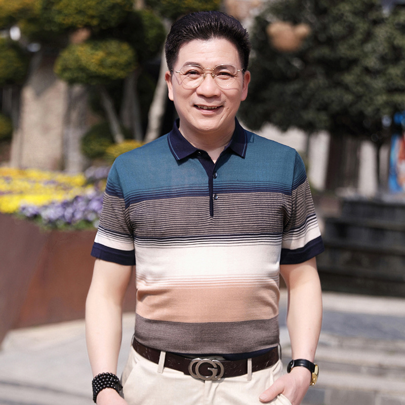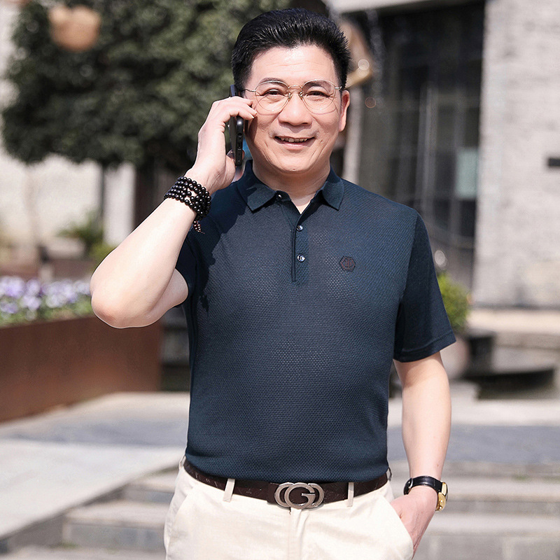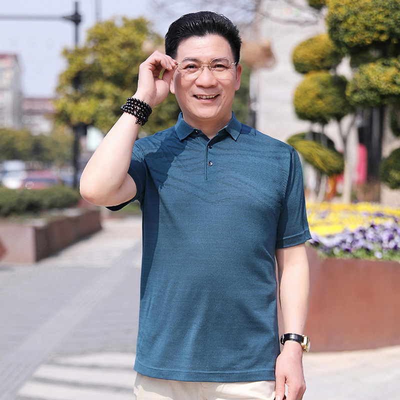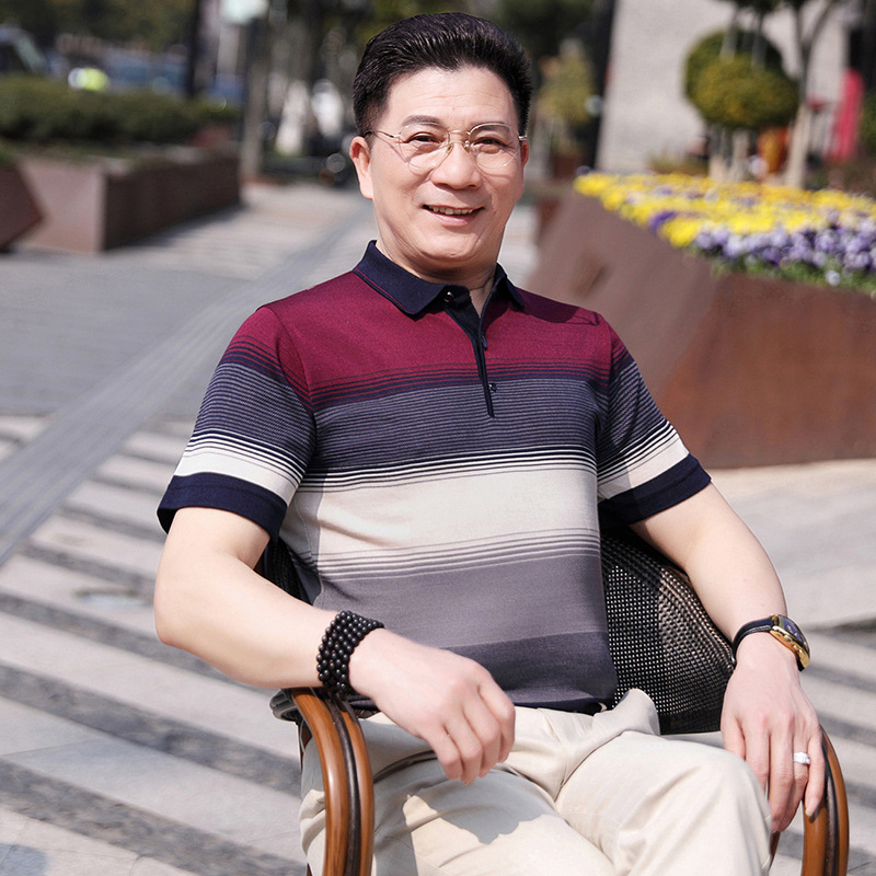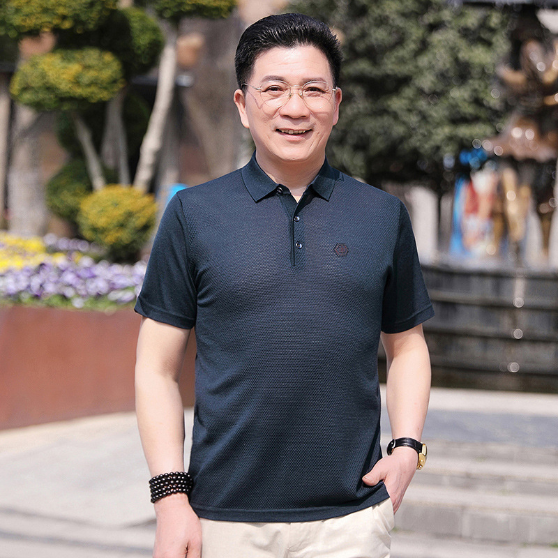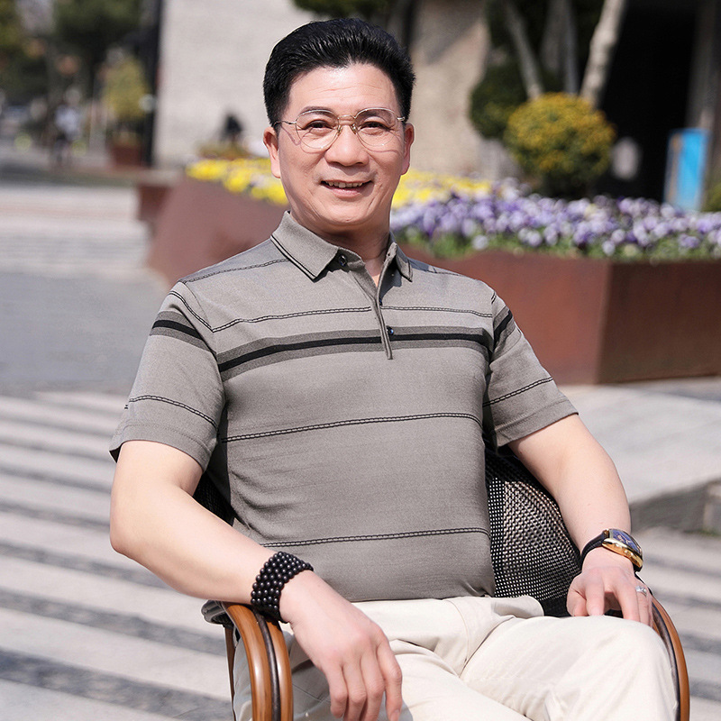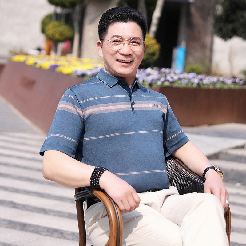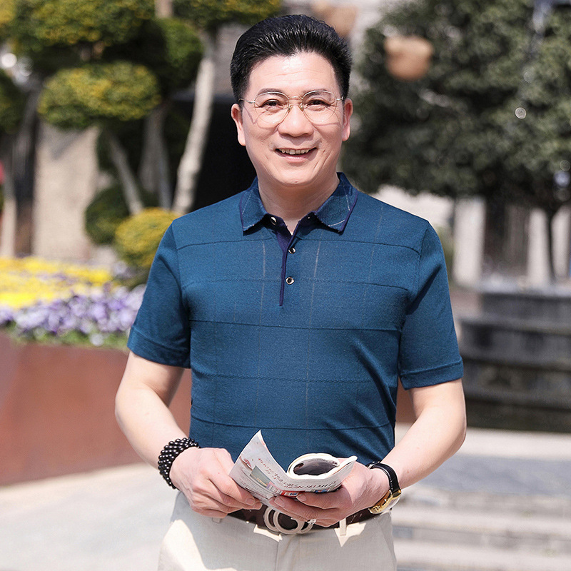 Dad's summer short-sleeved T-shirt, men's lapel half-sleeved knitted T-shirt, summer clothes for middle-aged and elderly people, POLO shirt