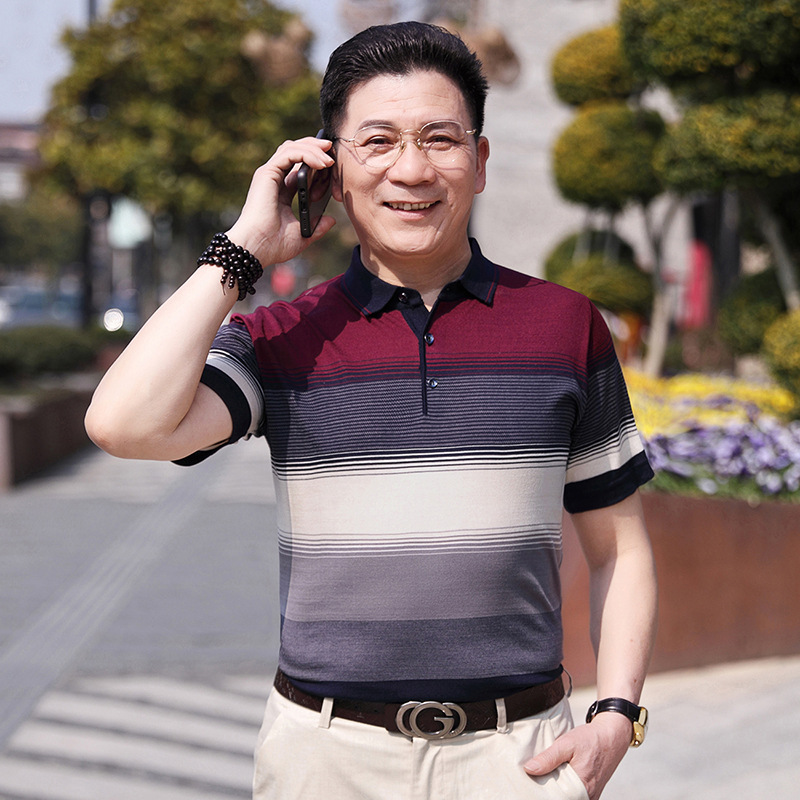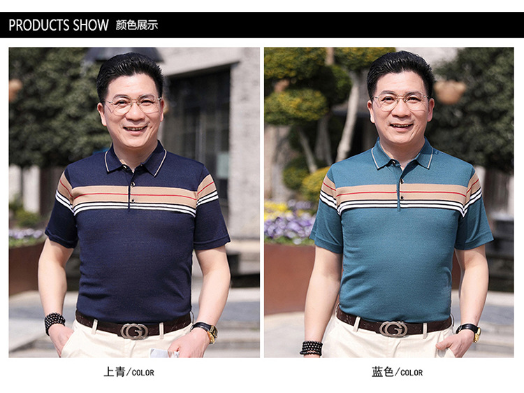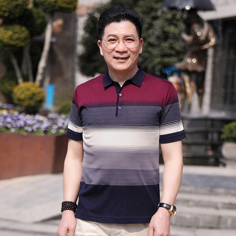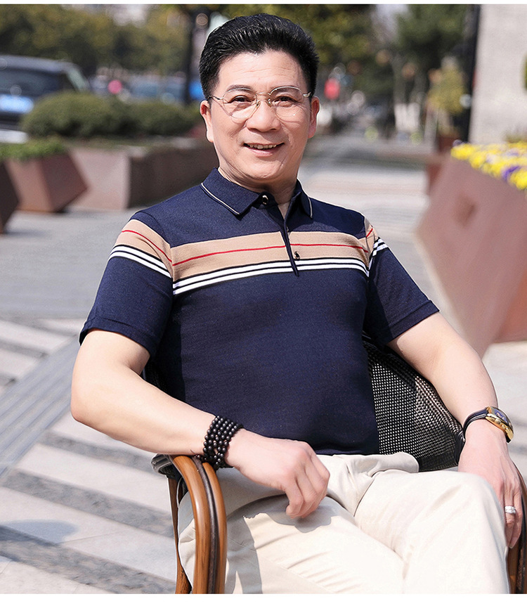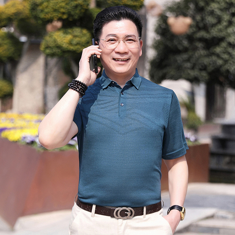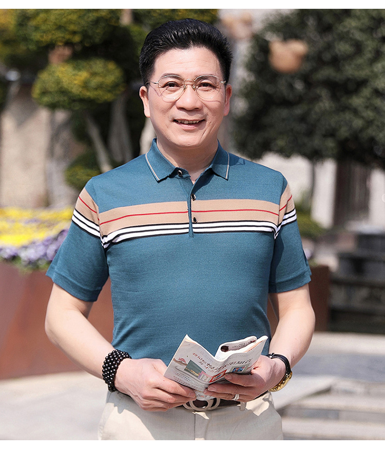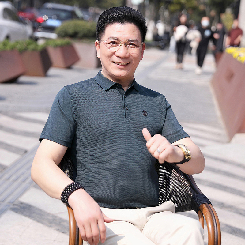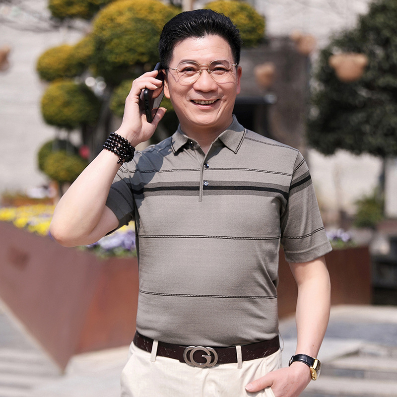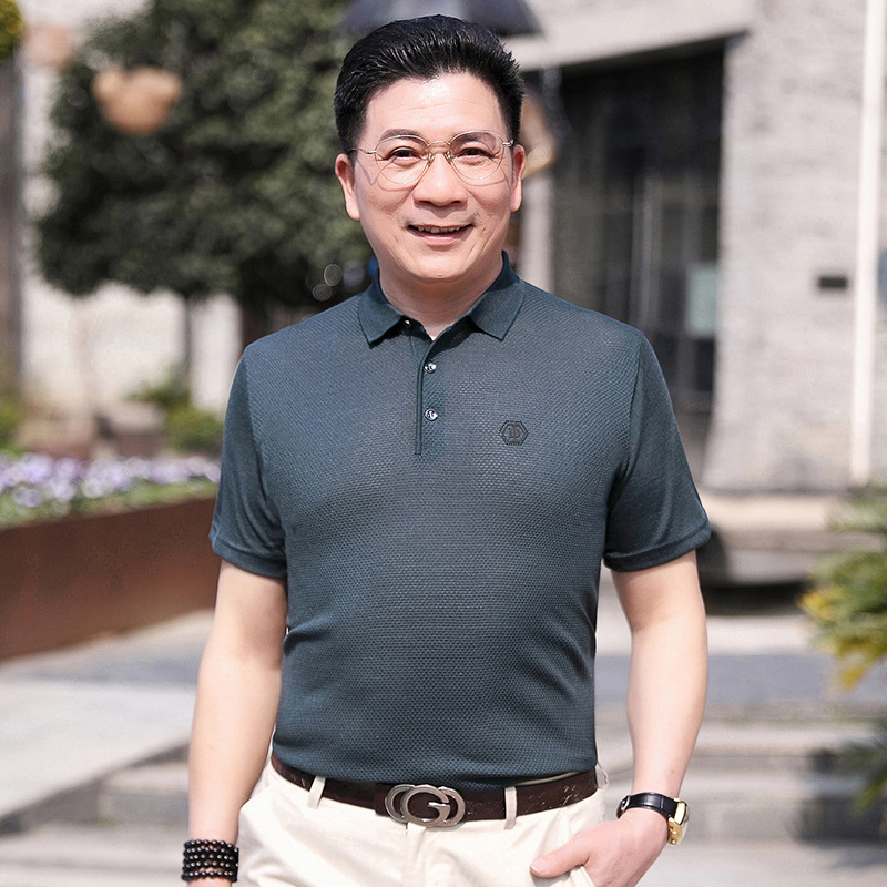 Dad's summer short-sleeved T-shirt, men's lapel half-sleeved knitted T-shirt, summer clothes for middle-aged and elderly people, POLO shirt