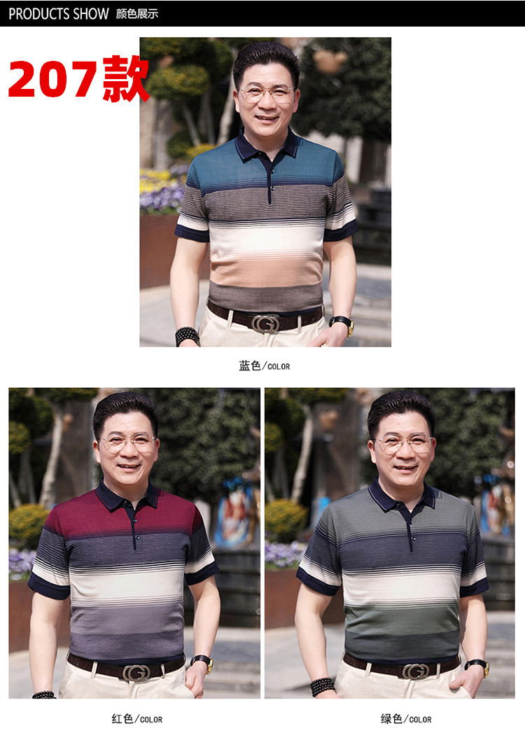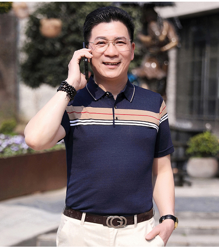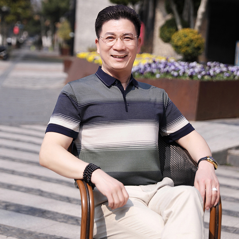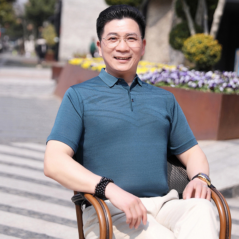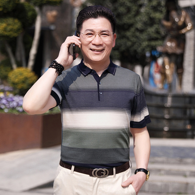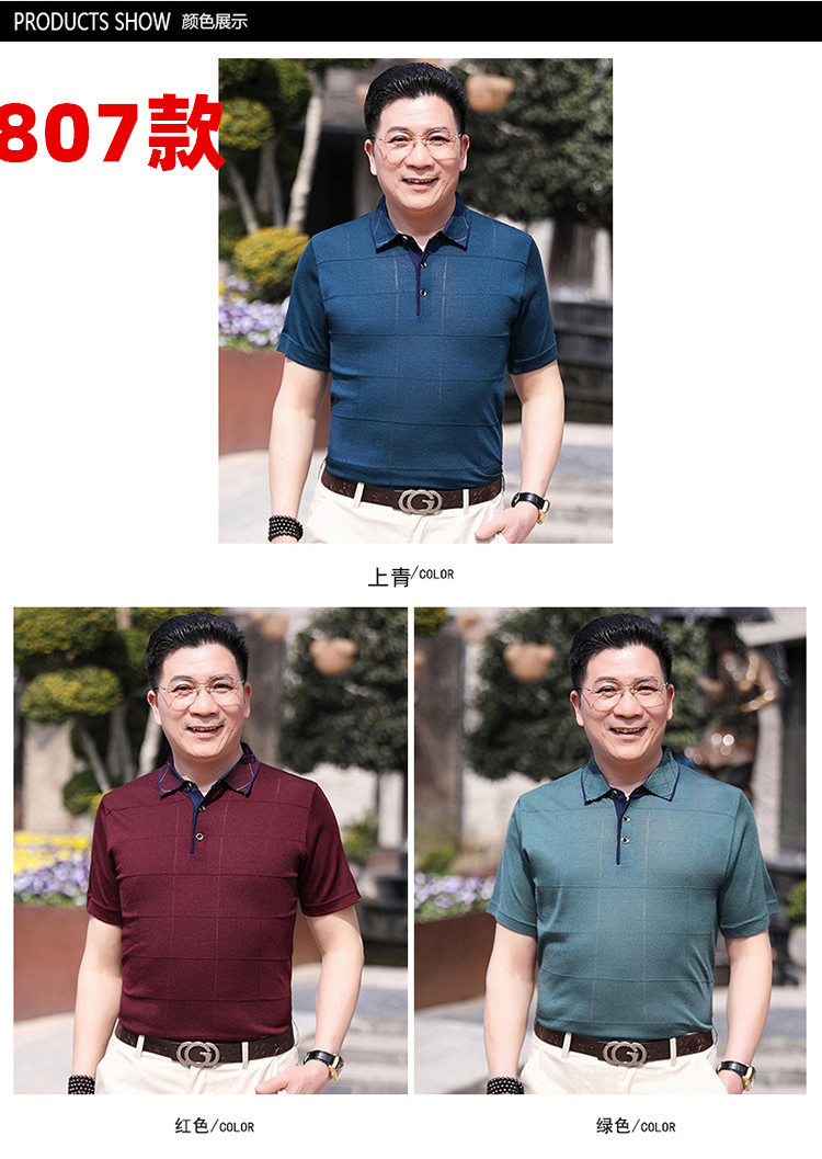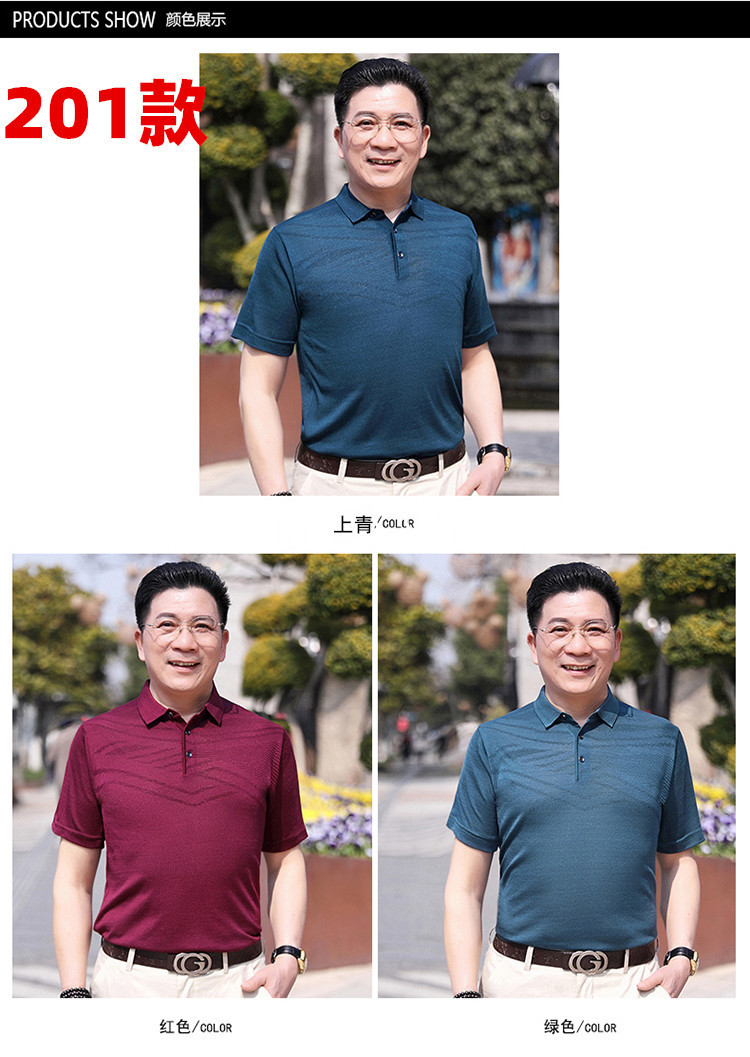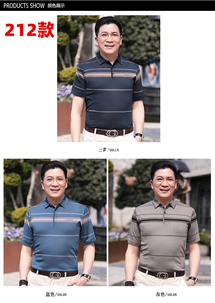 Dad's summer short-sleeved T-shirt, men's lapel half-sleeved knitted T-shirt, summer clothes for middle-aged and elderly people, POLO shirt