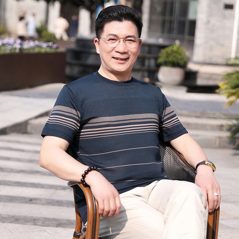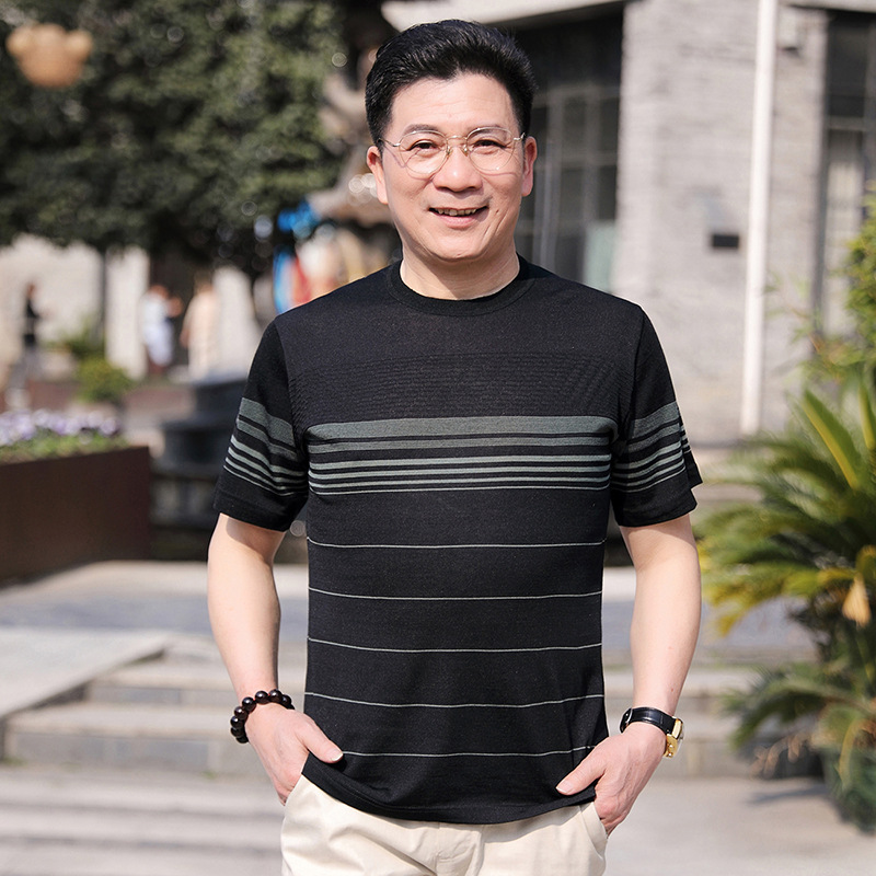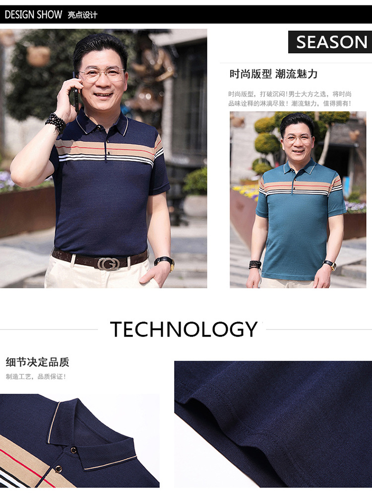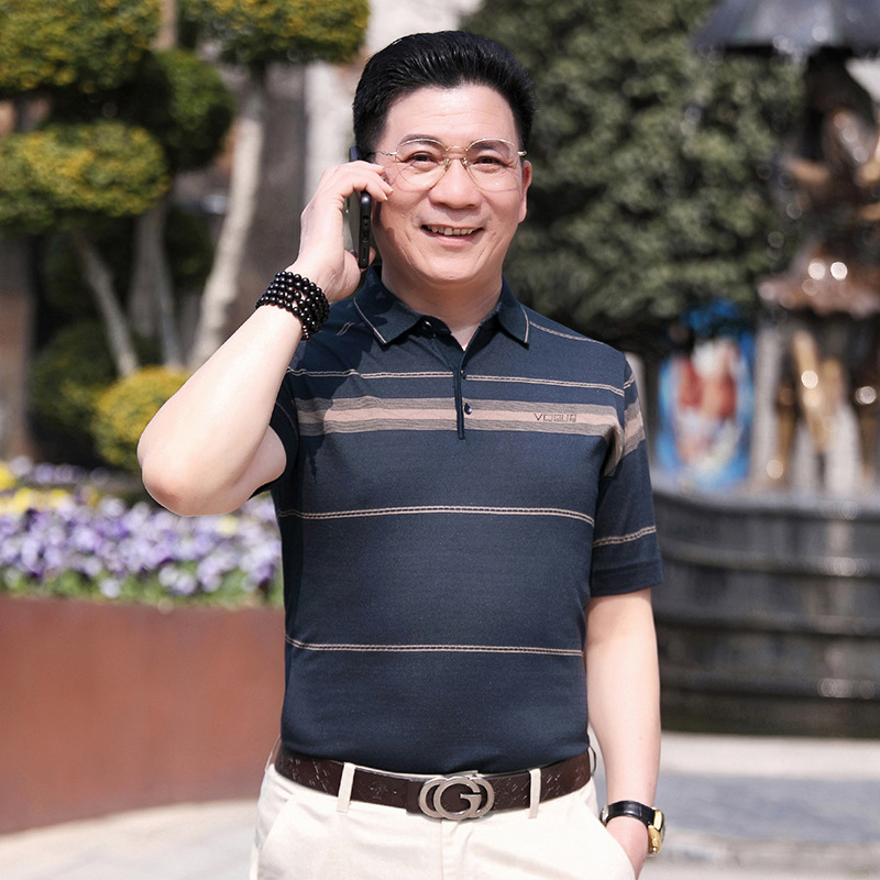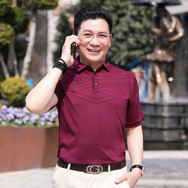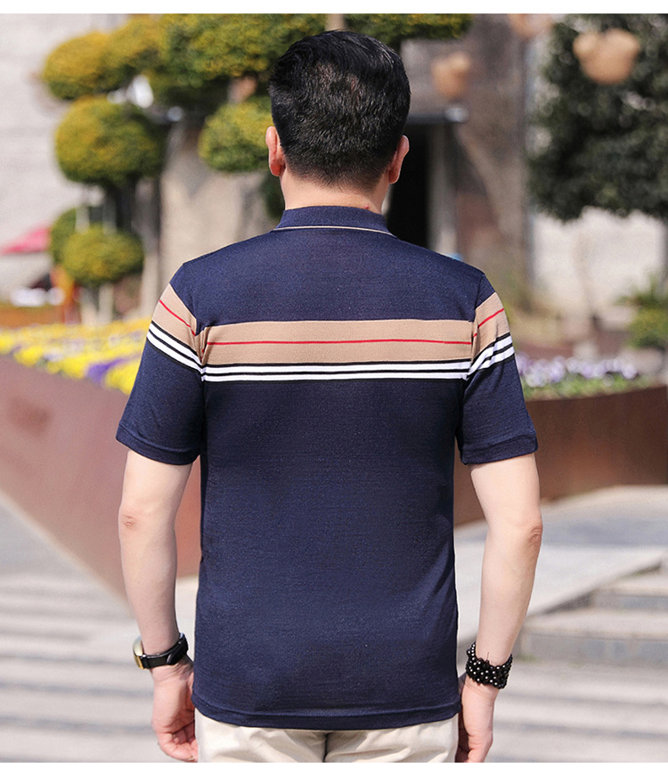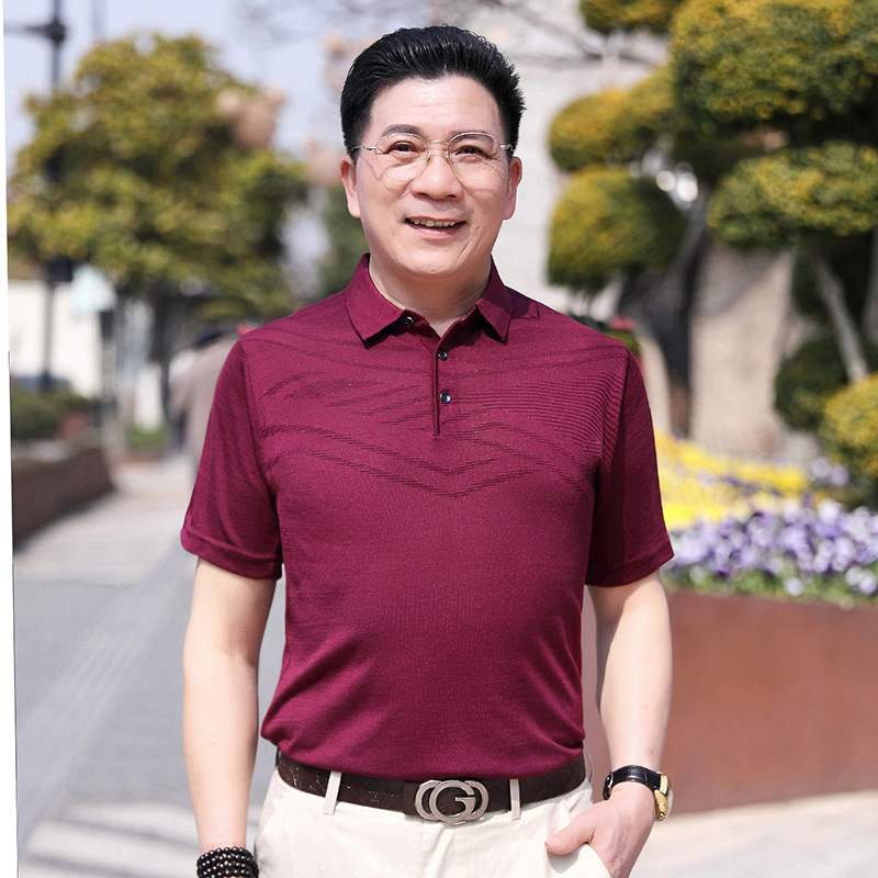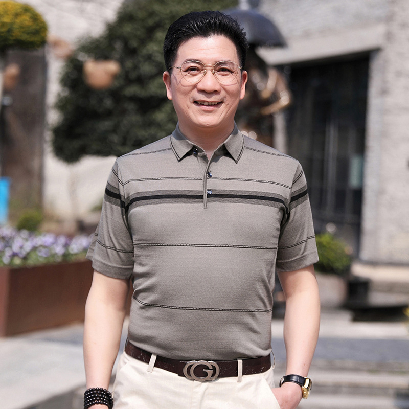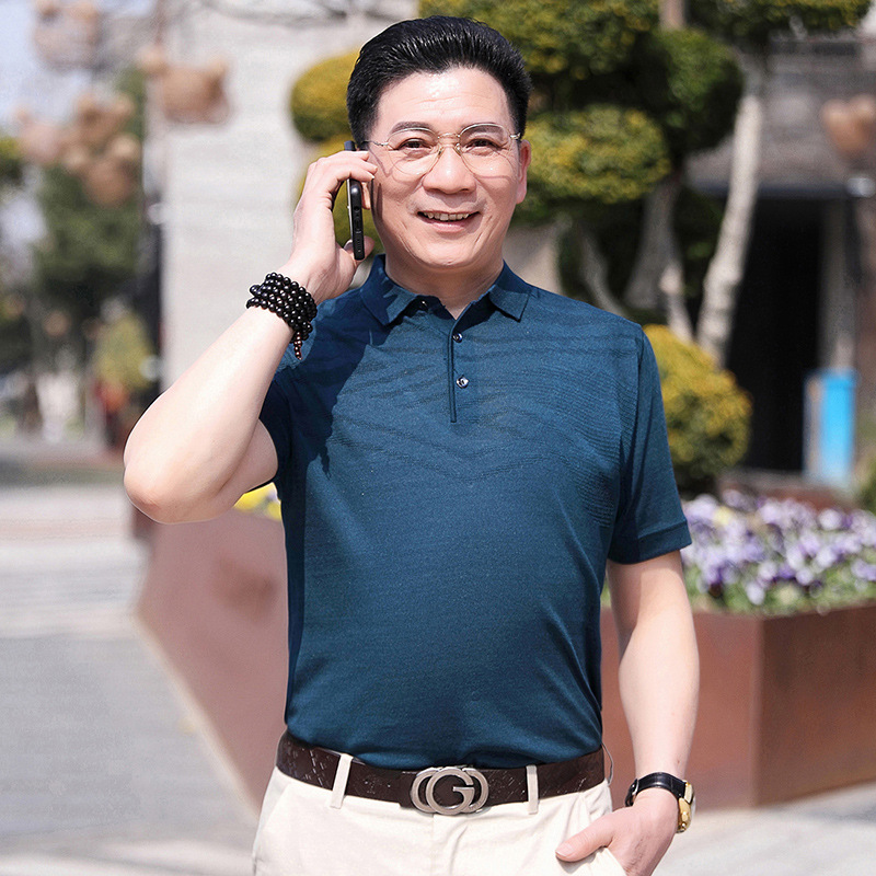Dad's summer short-sleeved T-shirt, men's lapel half-sleeved knitted T-shirt, summer clothes for middle-aged and elderly people, POLO shirt
