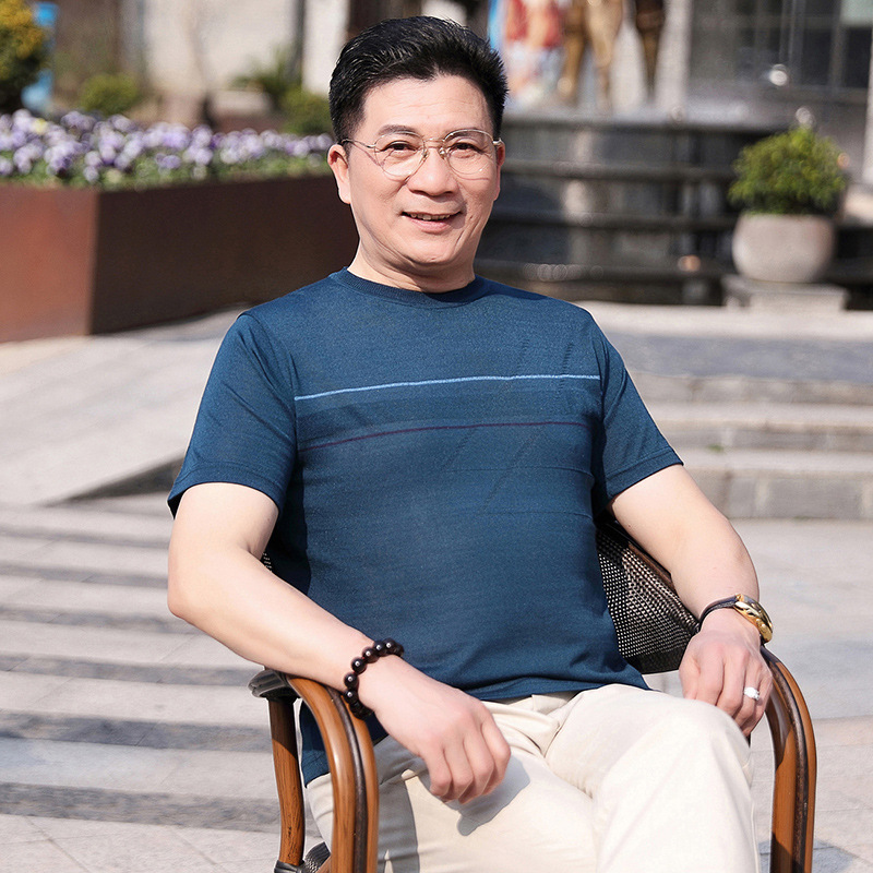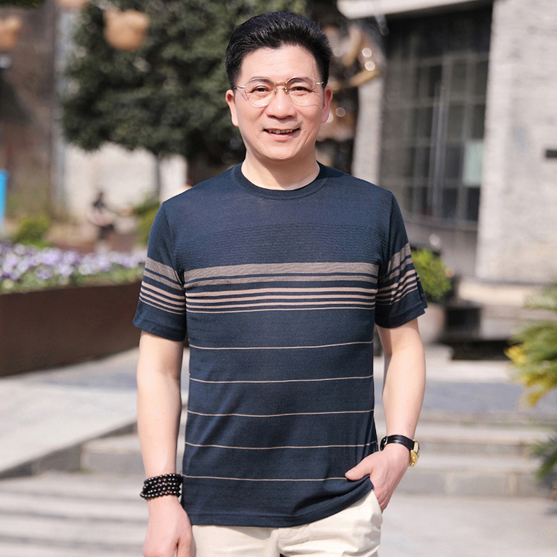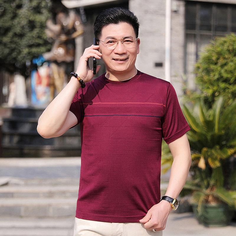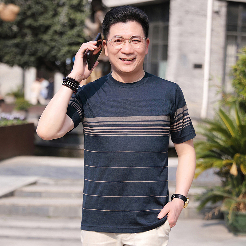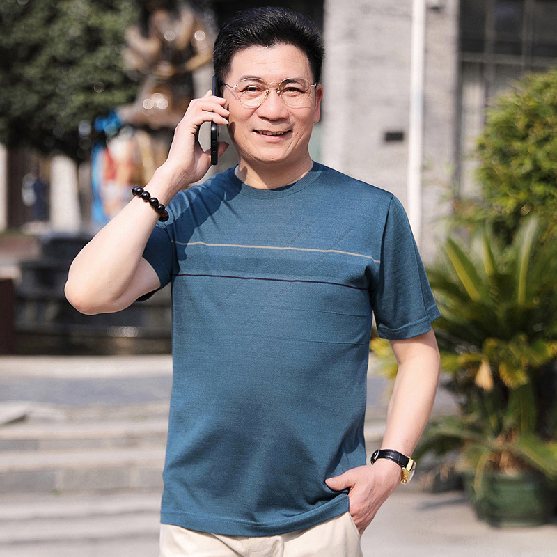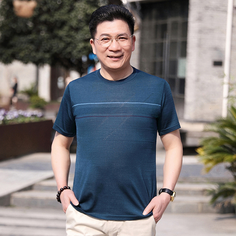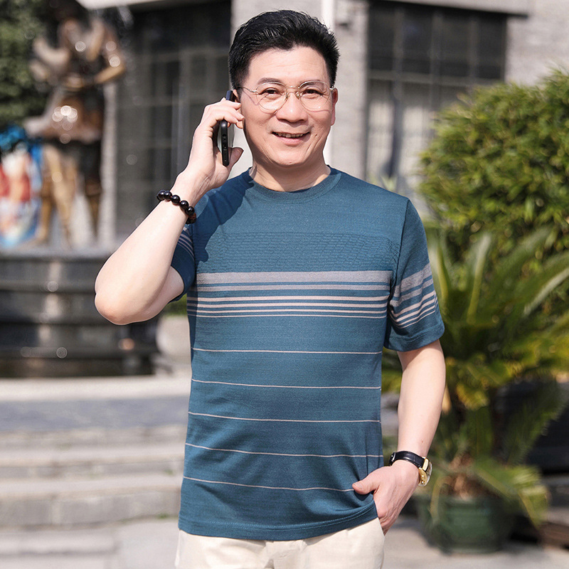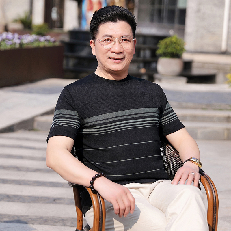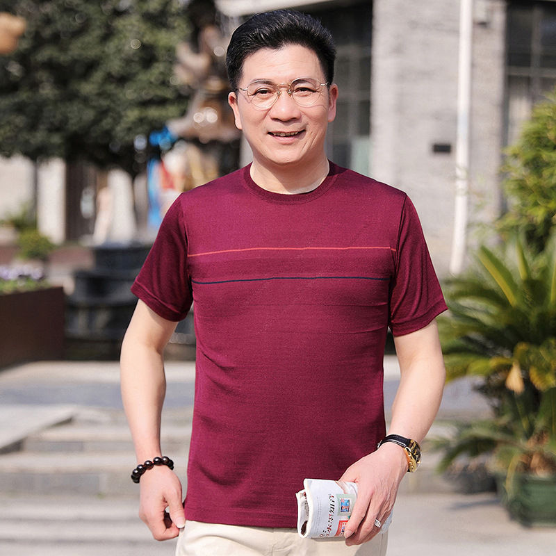 Dad's summer short-sleeved T-shirt, men's lapel half-sleeved knitted T-shirt, summer clothes for middle-aged and elderly people, POLO shirt
