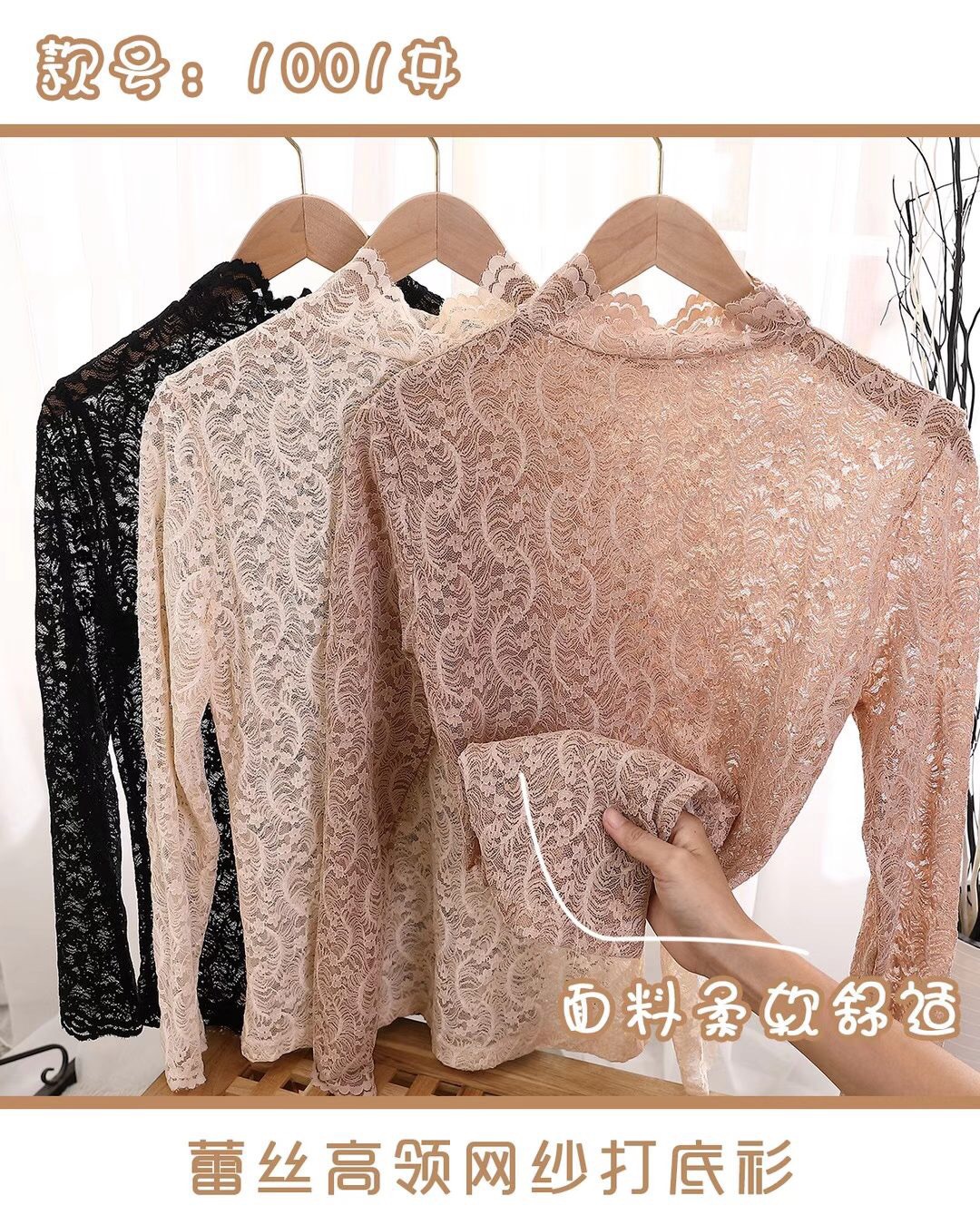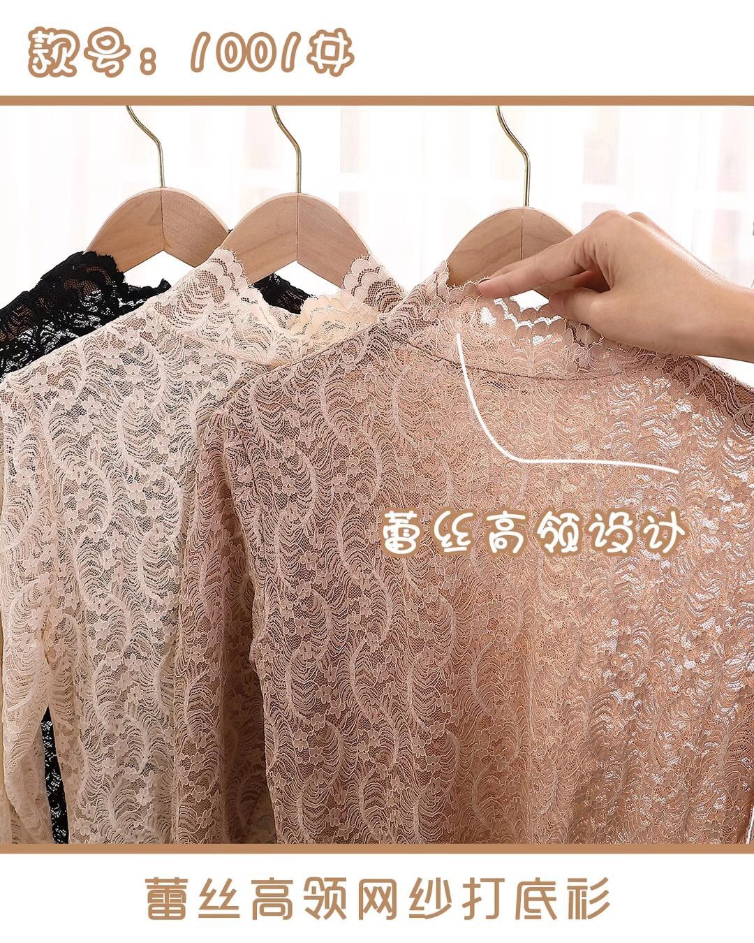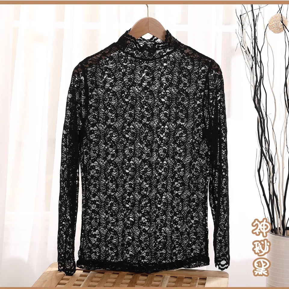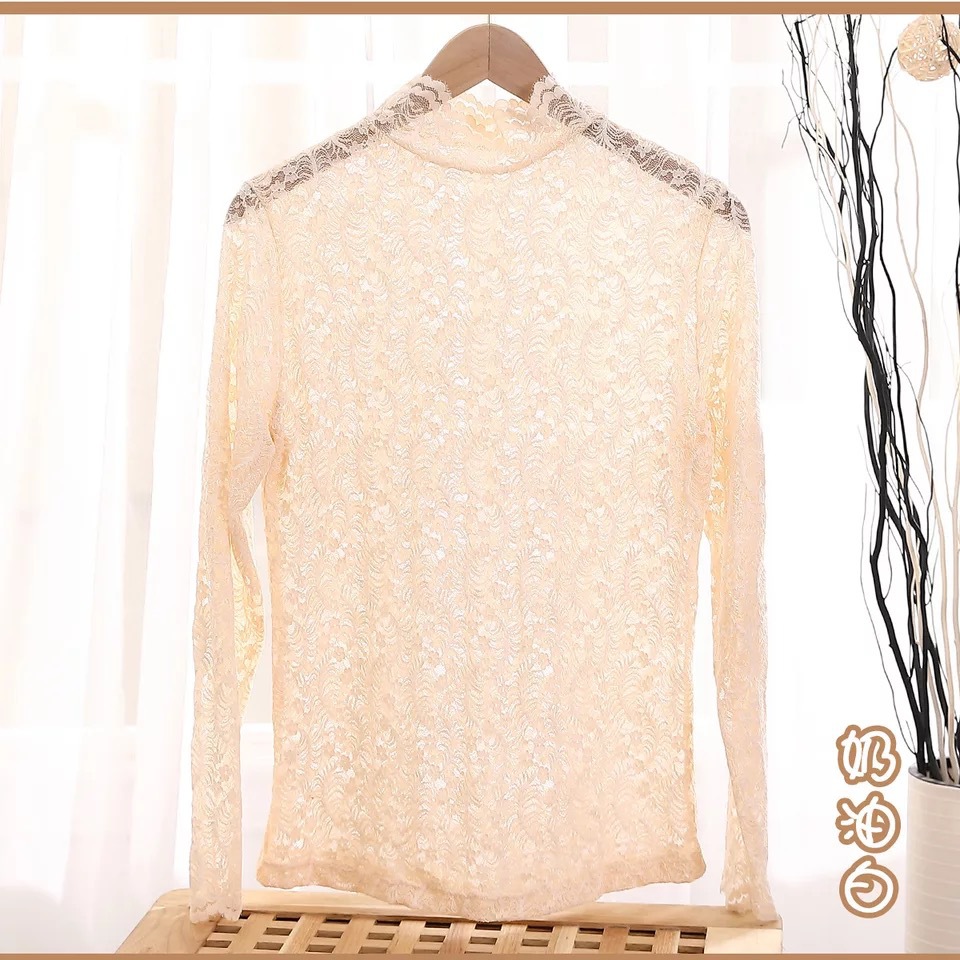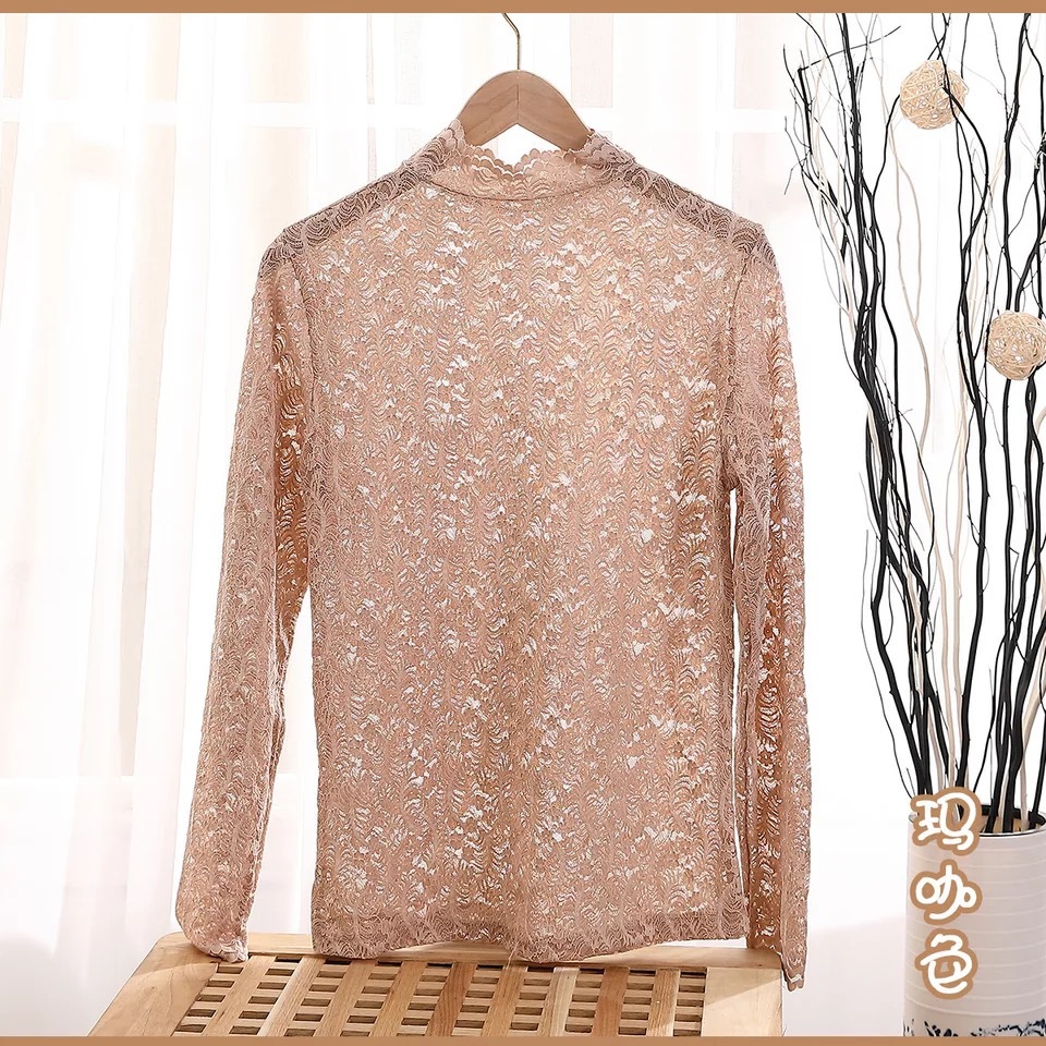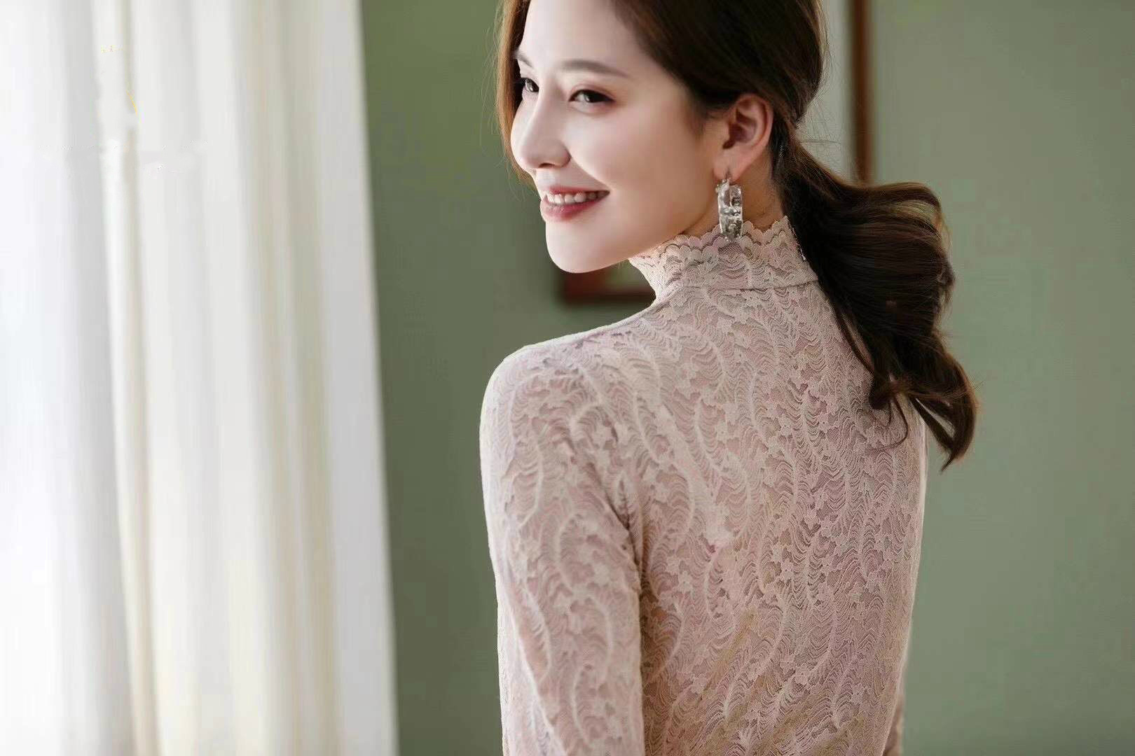 Daimeirui 1001 autumn base layer with women's high-neck fitted top, solid color lace long-sleeved shirt factory direct sales