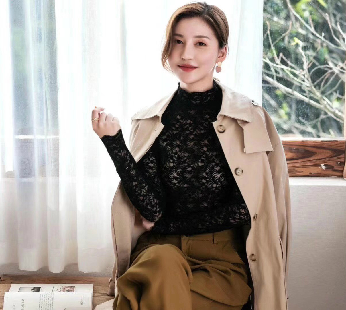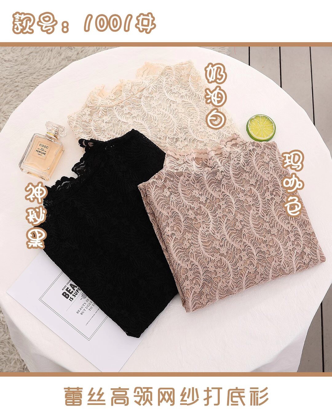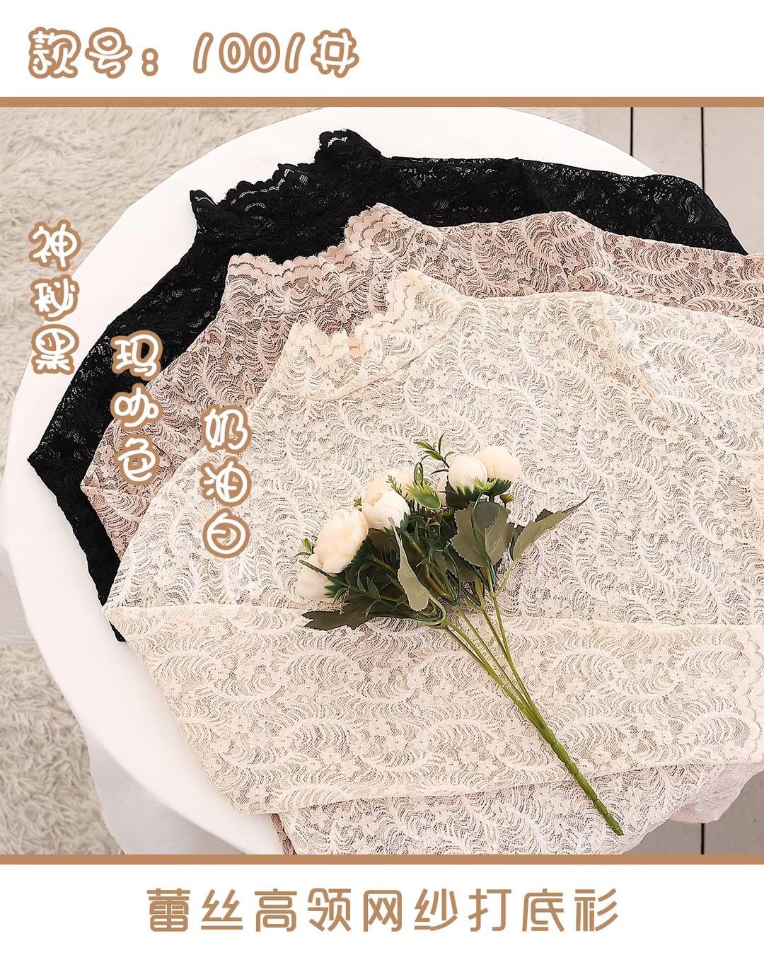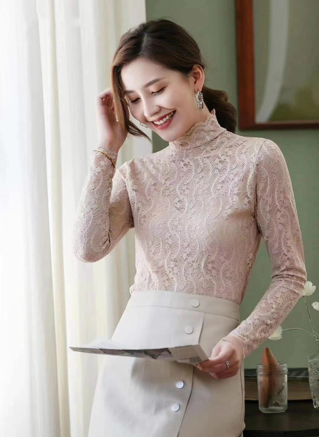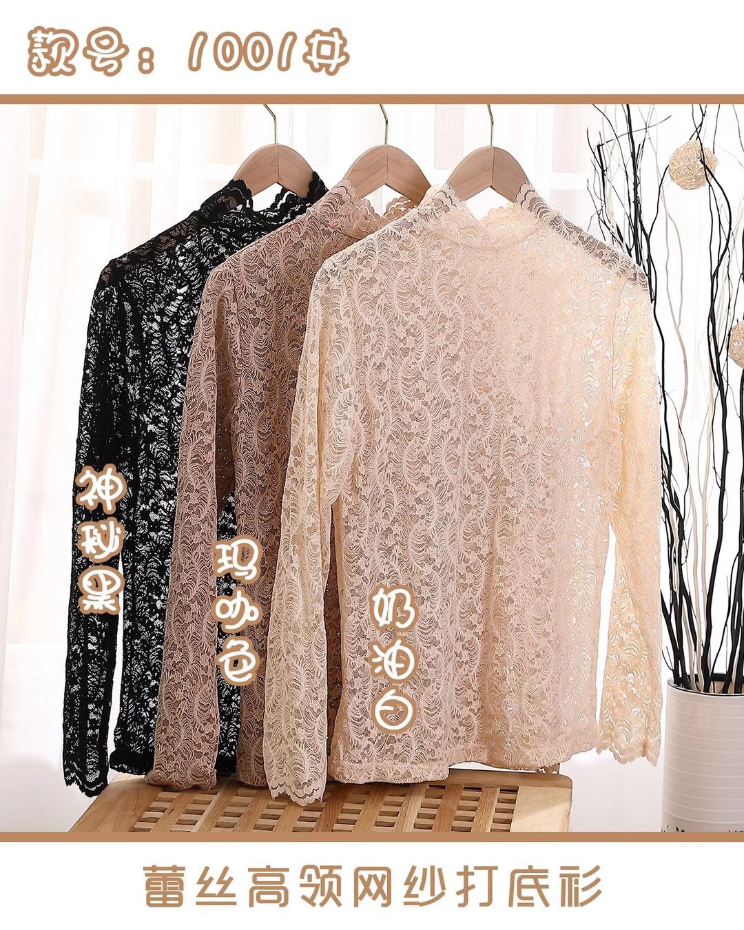 Daimeirui 1001 autumn base layer with women's high-neck fitted top, solid color lace long-sleeved shirt factory direct sales