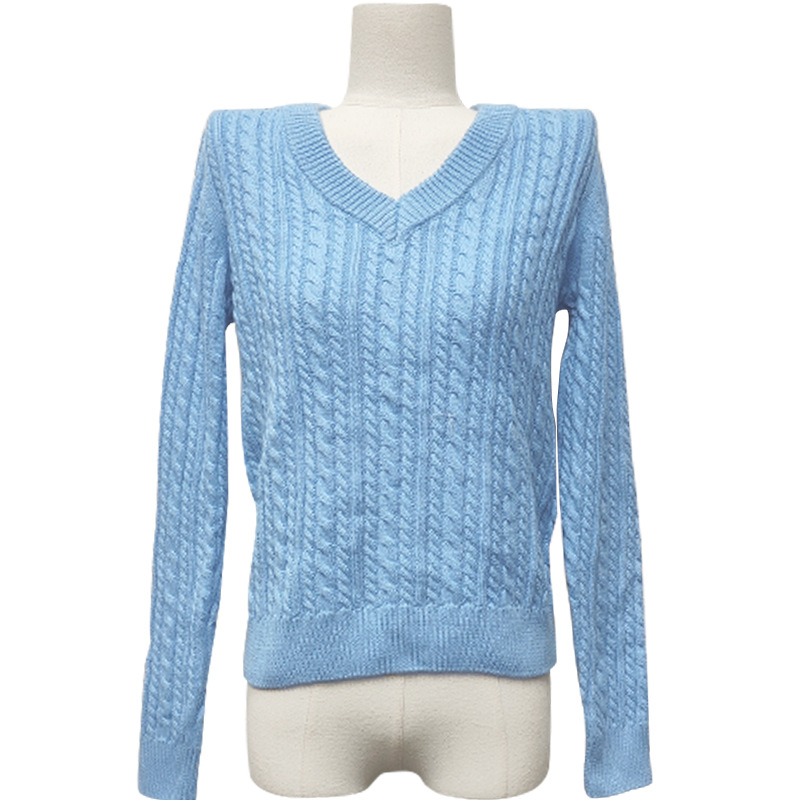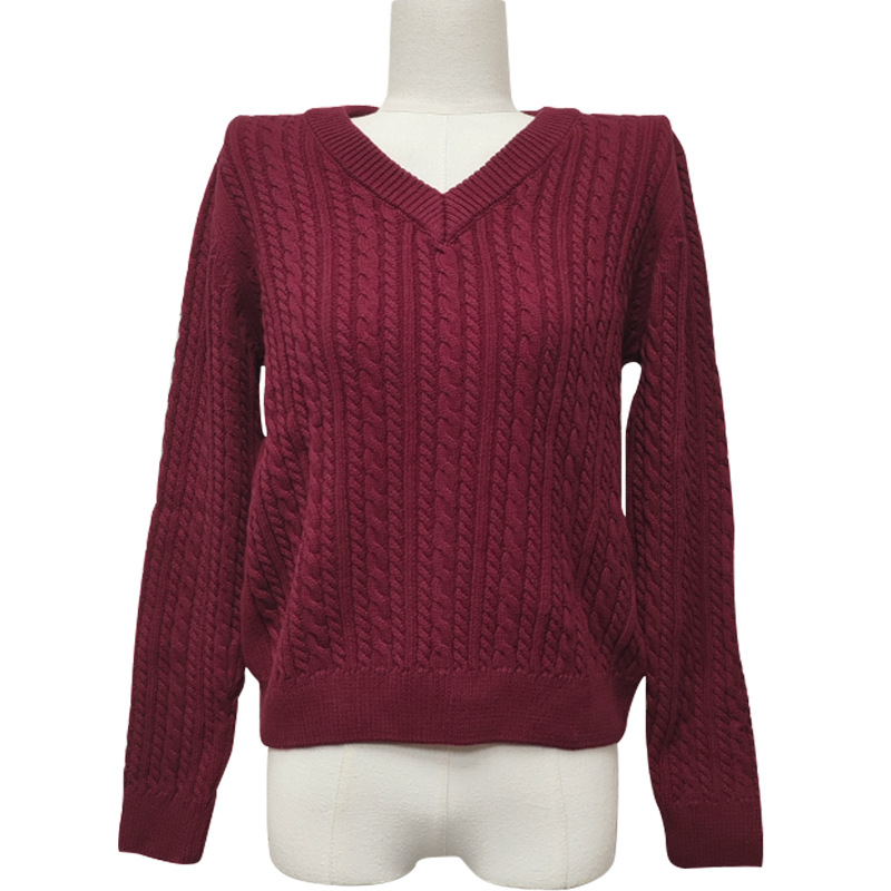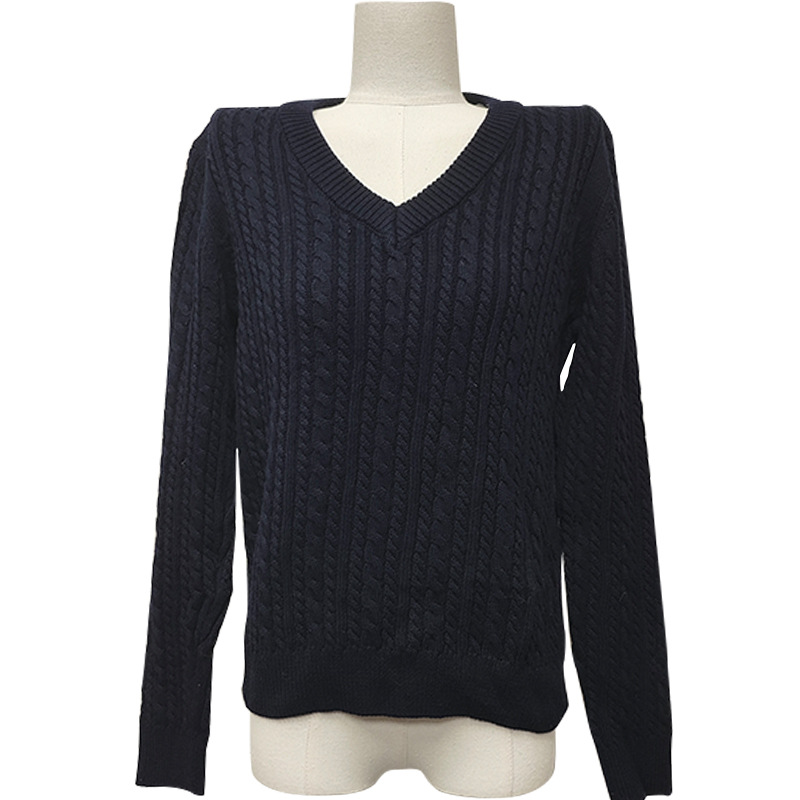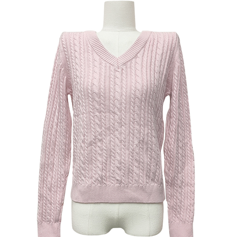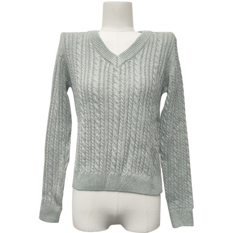 Dalang Sweater Factory wholesals elegant and ladylike grey V-neck long-sleeved braided pullover 100% cotton knitted sweaters for autumn and winter