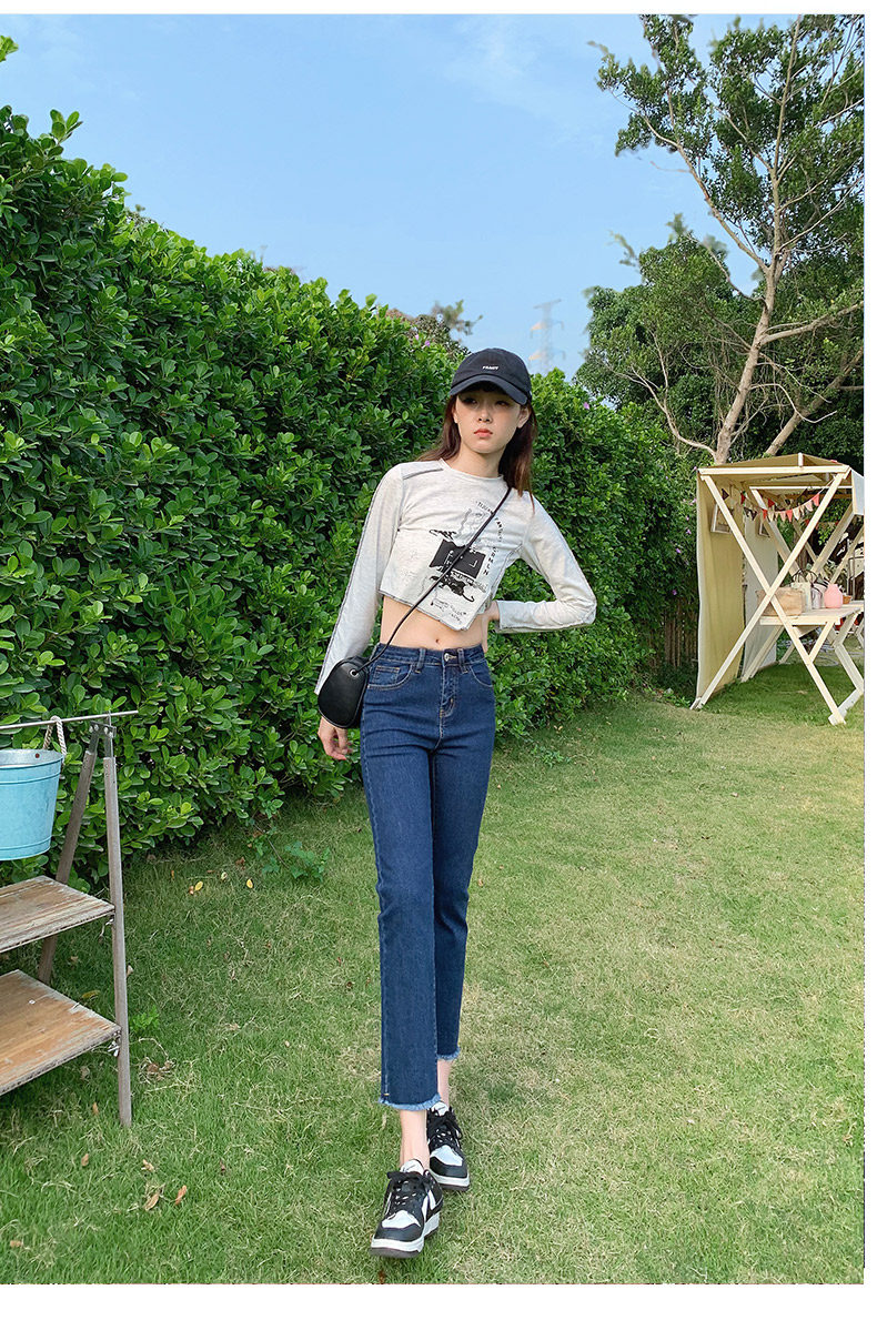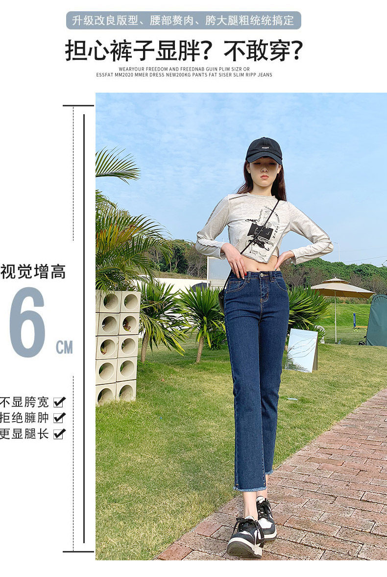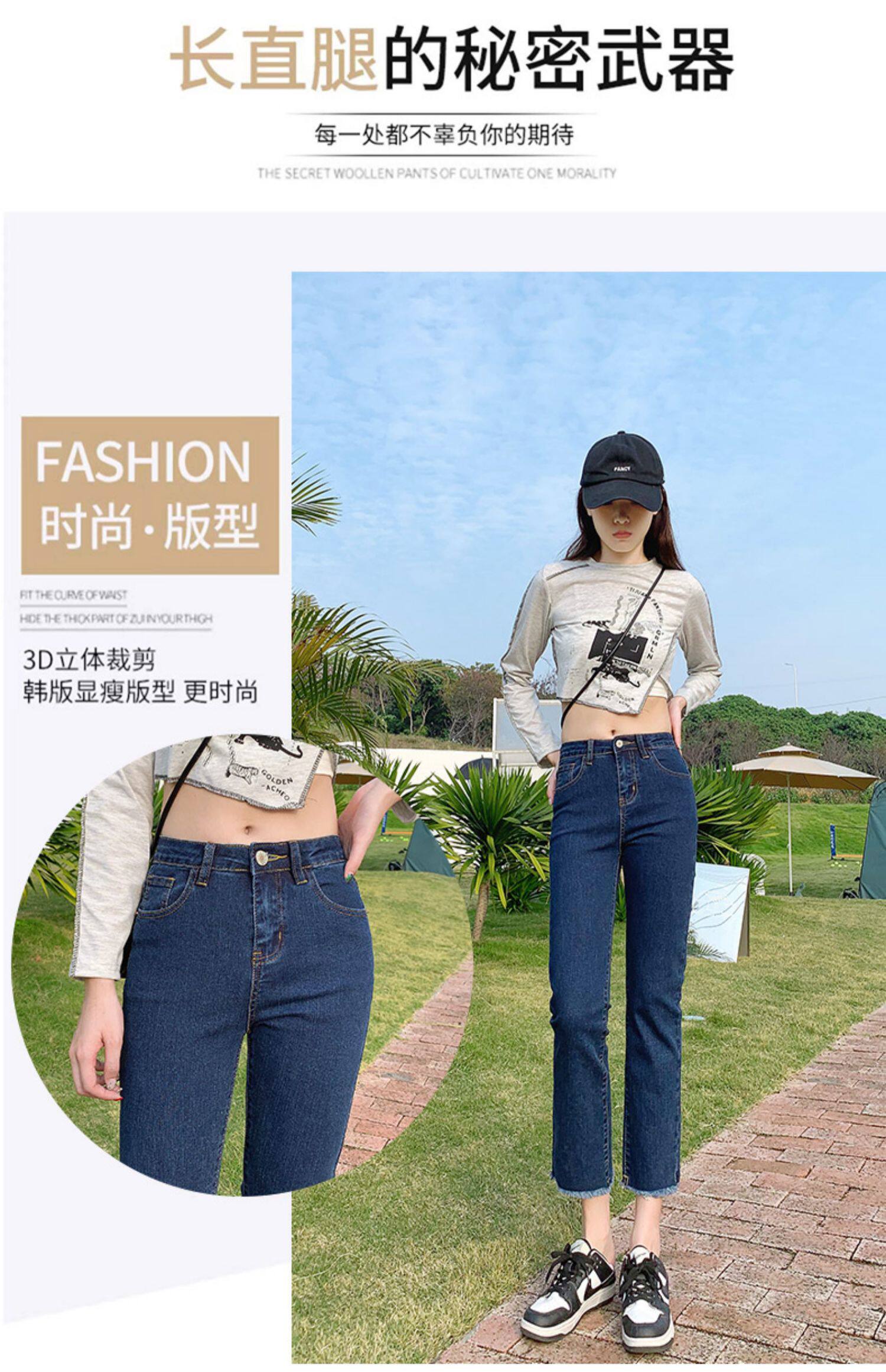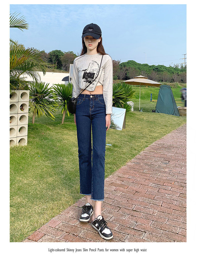 Dark blue cigarette tube straight-leg jeans for women's summer 2022, thin high-waisted pants that show a petite figure