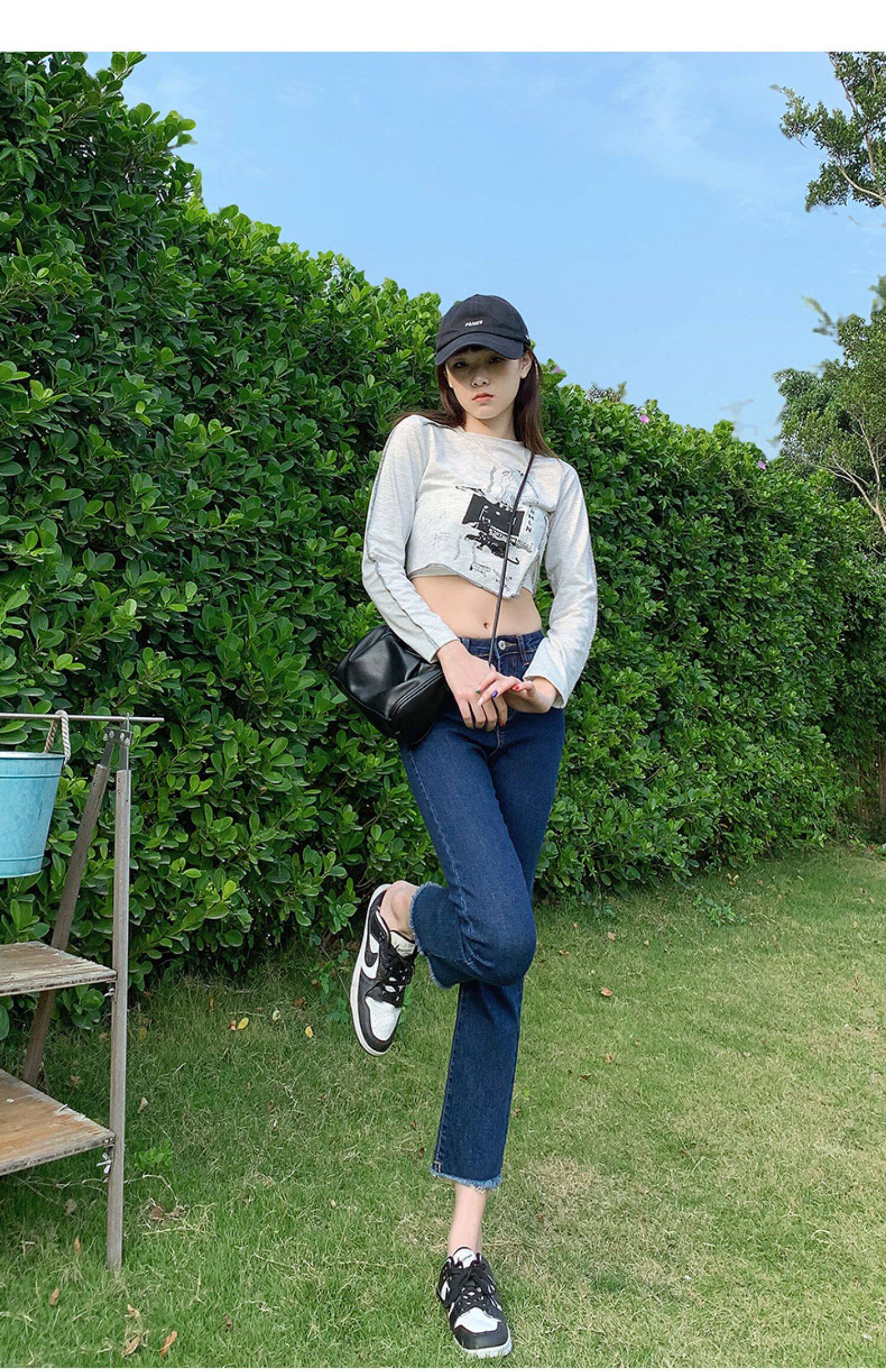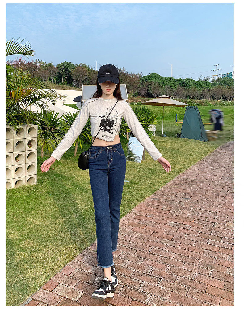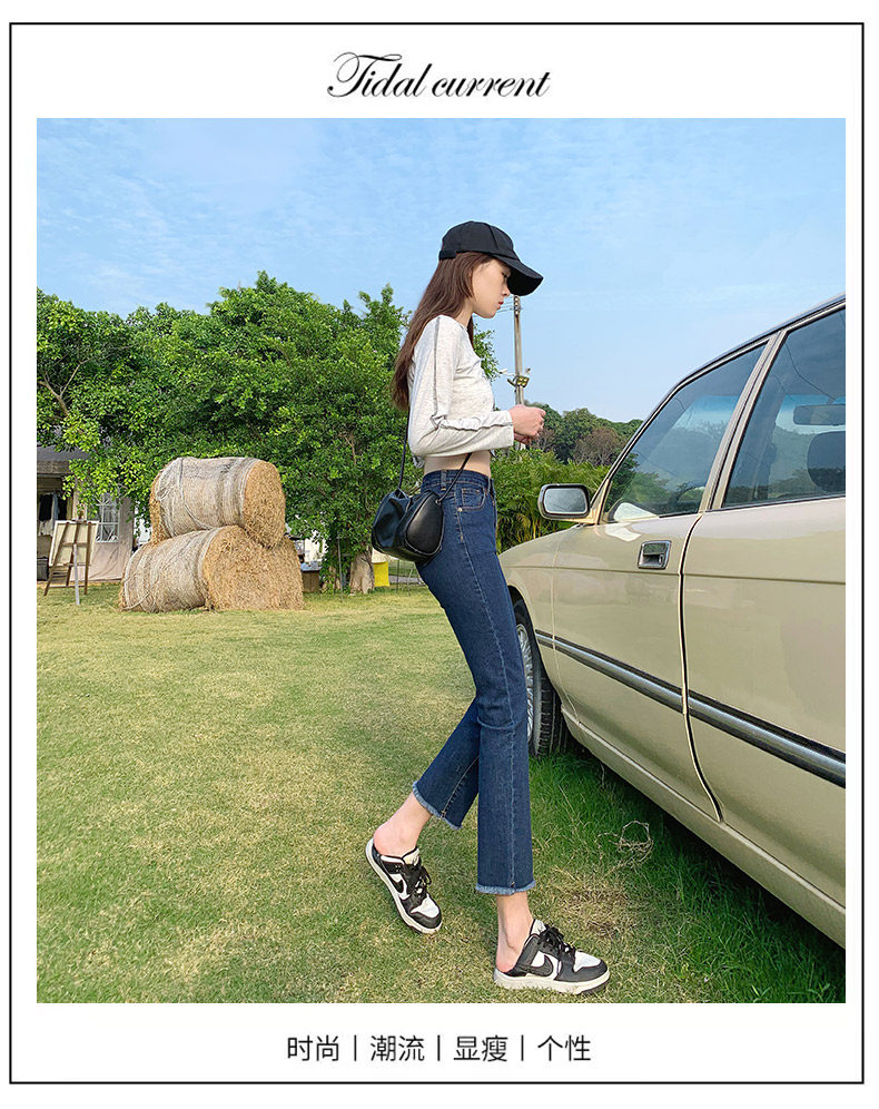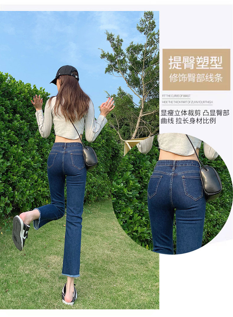 Dark blue cigarette tube straight-leg jeans for women's summer 2022, thin high-waisted pants that show a petite figure