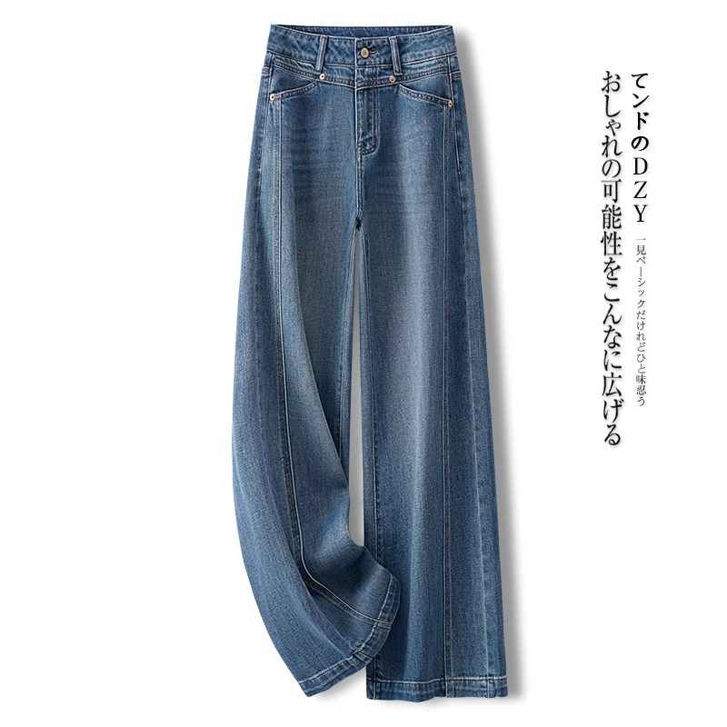 Dark blue wide-leg jeans for women, 2025 new style, high-end retro floor-length pants, loose and slimming straight-leg pants