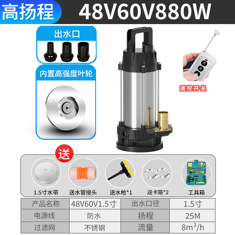 Large spray gun 48V - 60V - 1.5-inch 15-meter wire + remote control +15 water hoses