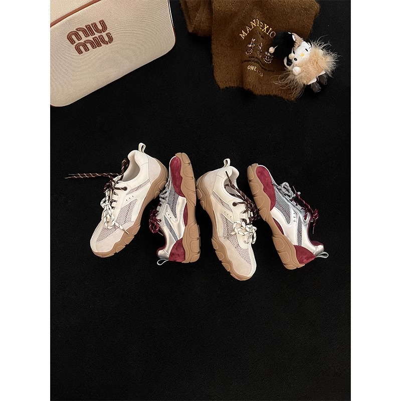 Cowhide version ~ Thick-soled De Xun shoes for women, Spring 2025 new style, showing off feet, small thick-soled casual Agan shoes, mesh white sneakers