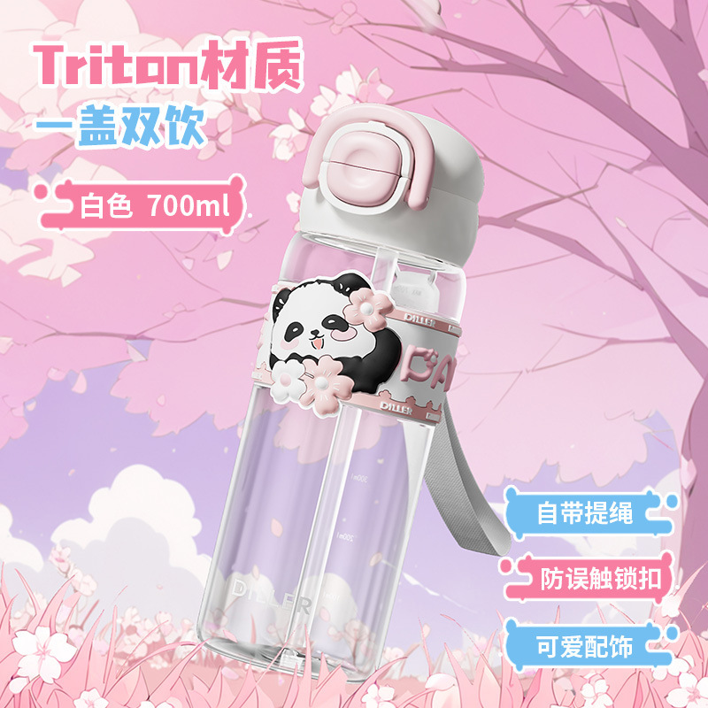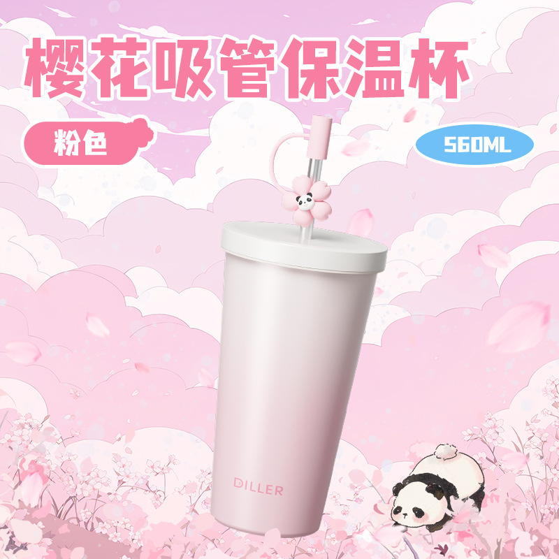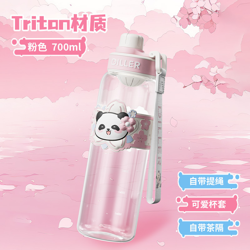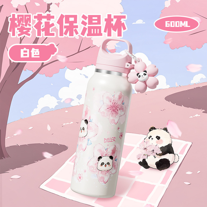 Delebel's new cherry blossom Panda warm Cup 316 is a cute girls' water cup with a high level of appearance and is a portable plastic cup for students