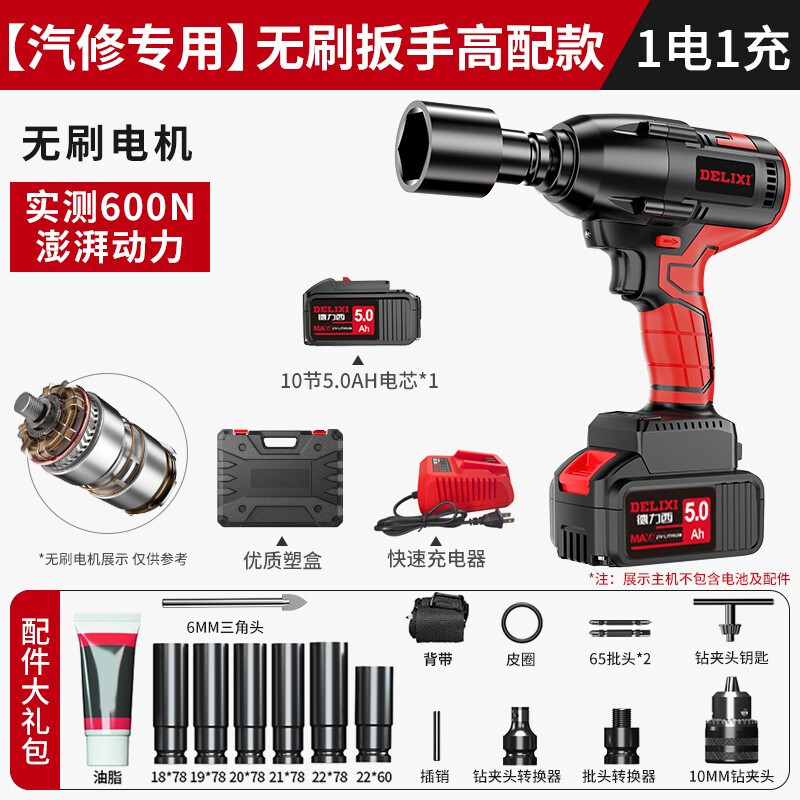 DELIXI brushless electric wrench, electric air cannon, auto repair and maintenance set, electric tool wrench, hand impact wrench, air cannon