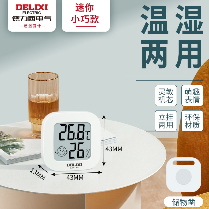 Delixi electronic temperature and humidity meter, indoor mini temperature, household high-precision greenhouse dry and wet temperature meter, air conditioner