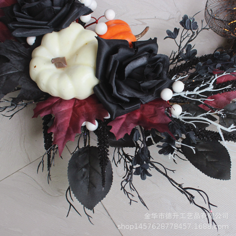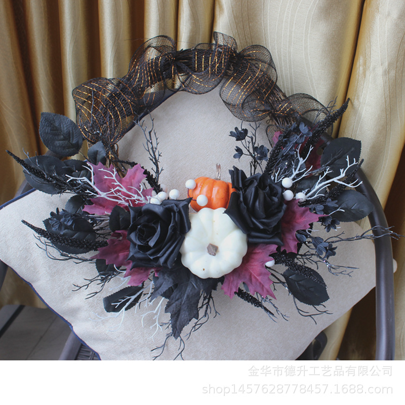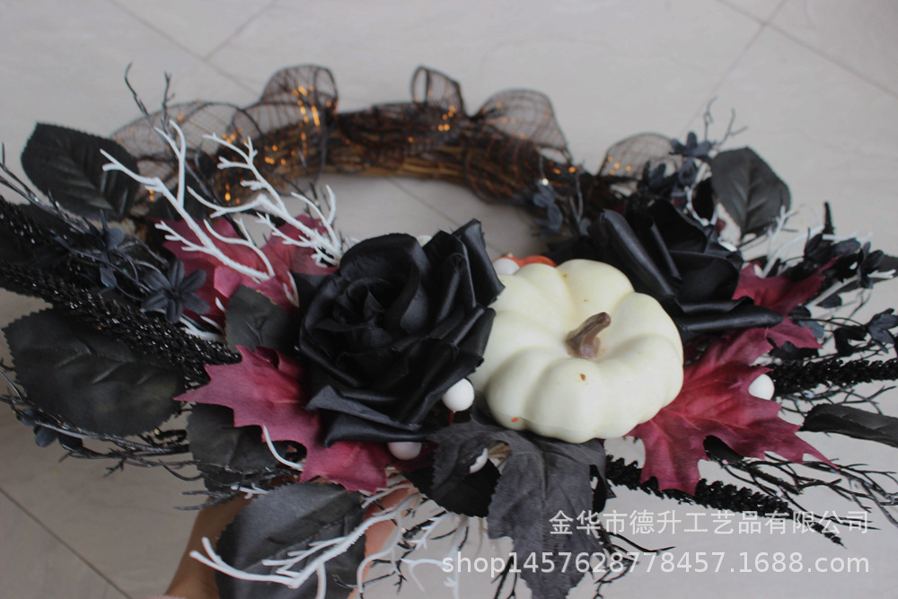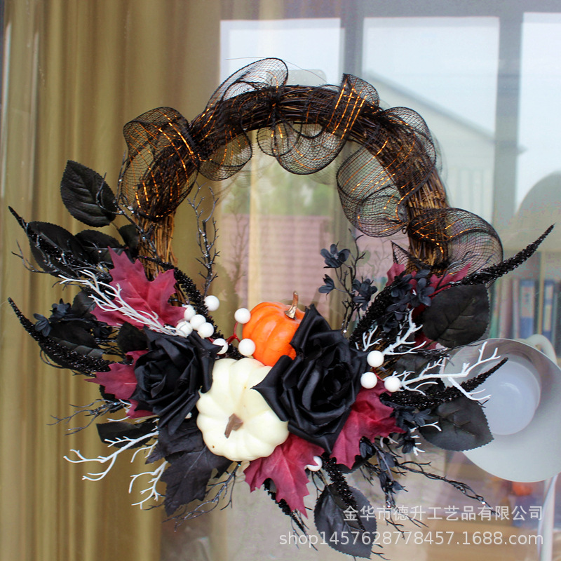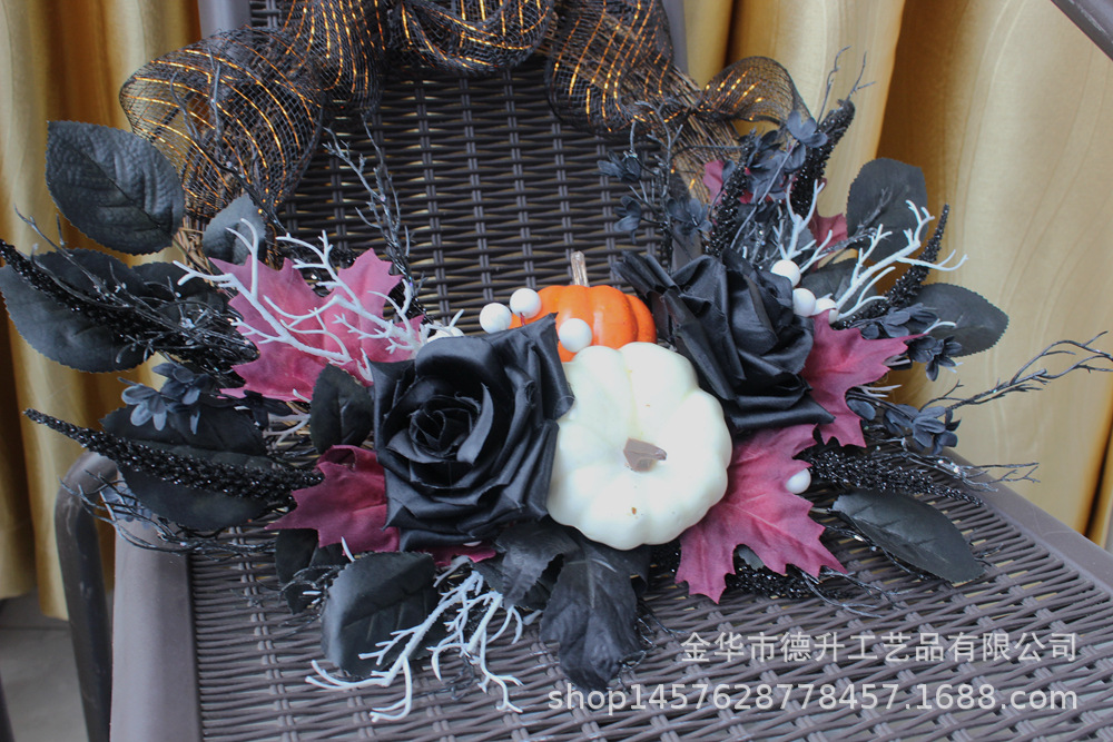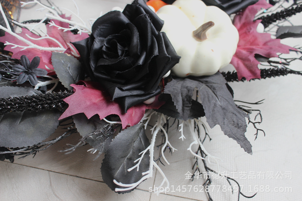 Desheng's 2022 new Amazon Halloween decorations feature simulated flowers, black roses, pumpkins, gauze nets, and real vine garlands