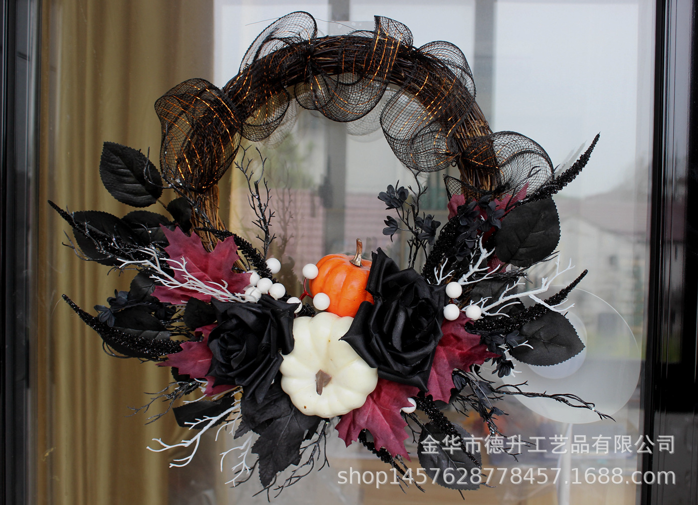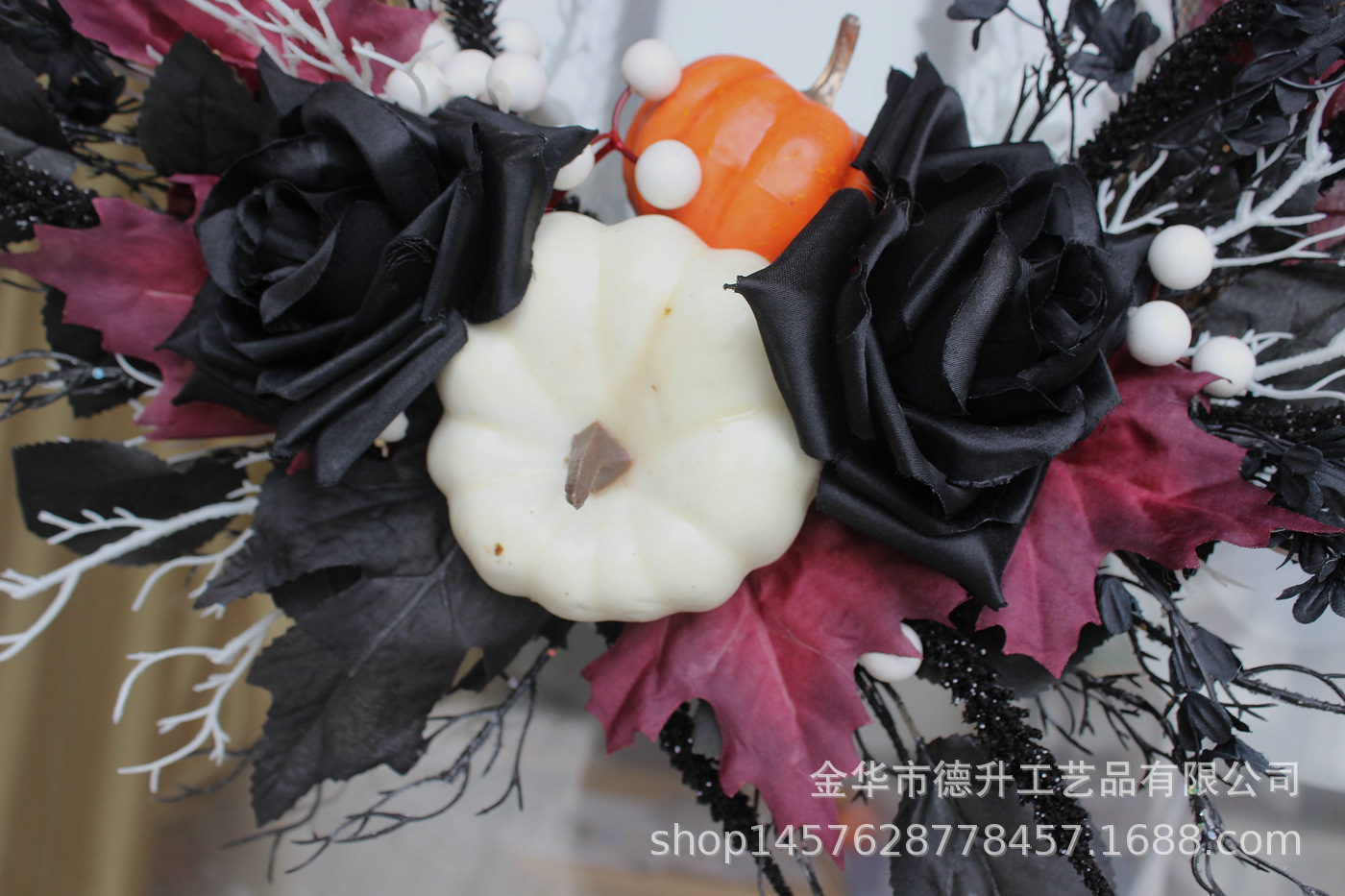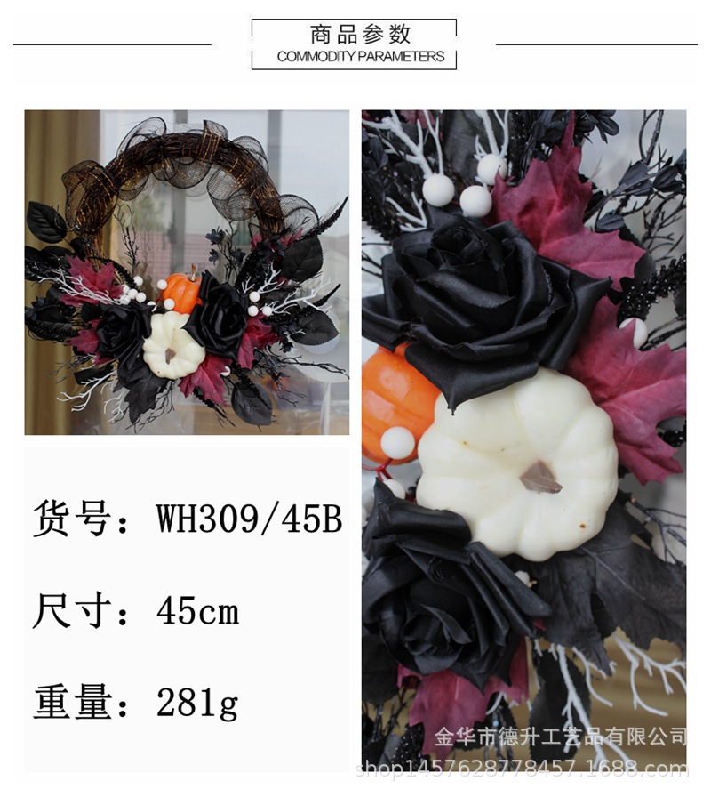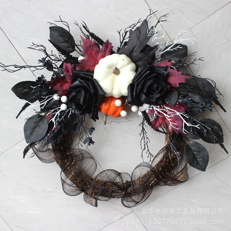 Desheng's 2022 new Amazon Halloween decorations feature simulated flowers, black roses, pumpkins, gauze nets, and real vine garlands