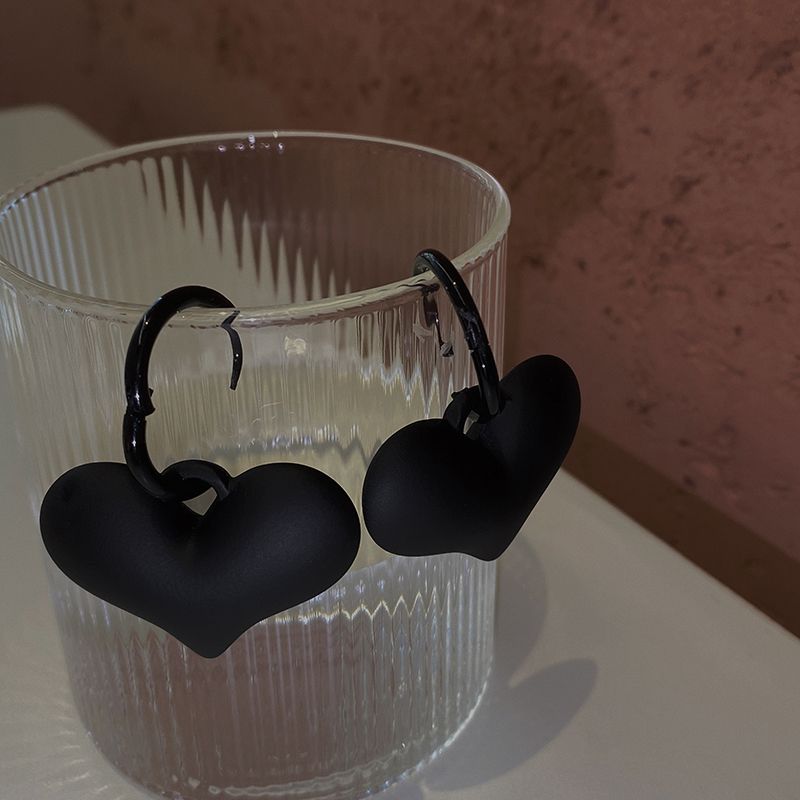 Desire ~ Dark black ins heart-shaped autumn earrings for women 2021 New trendy, versatile and simple heart-shaped earrings