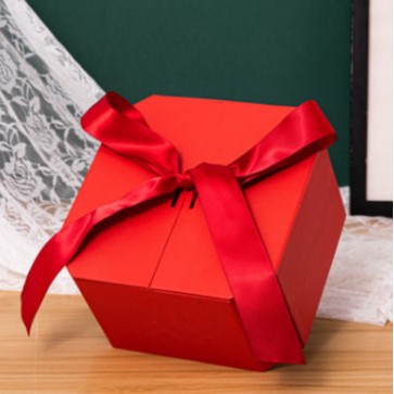 Red small-sized gift box 15*15*10cm (including raffia grass + light strip)