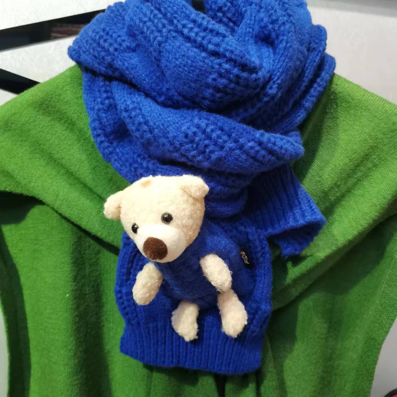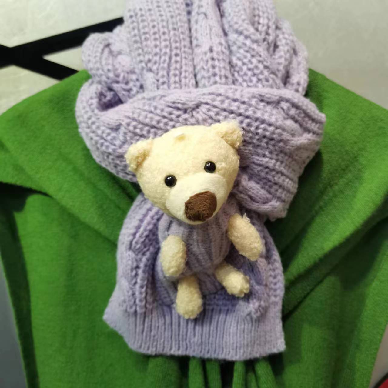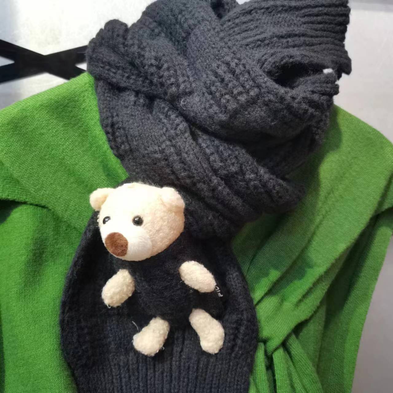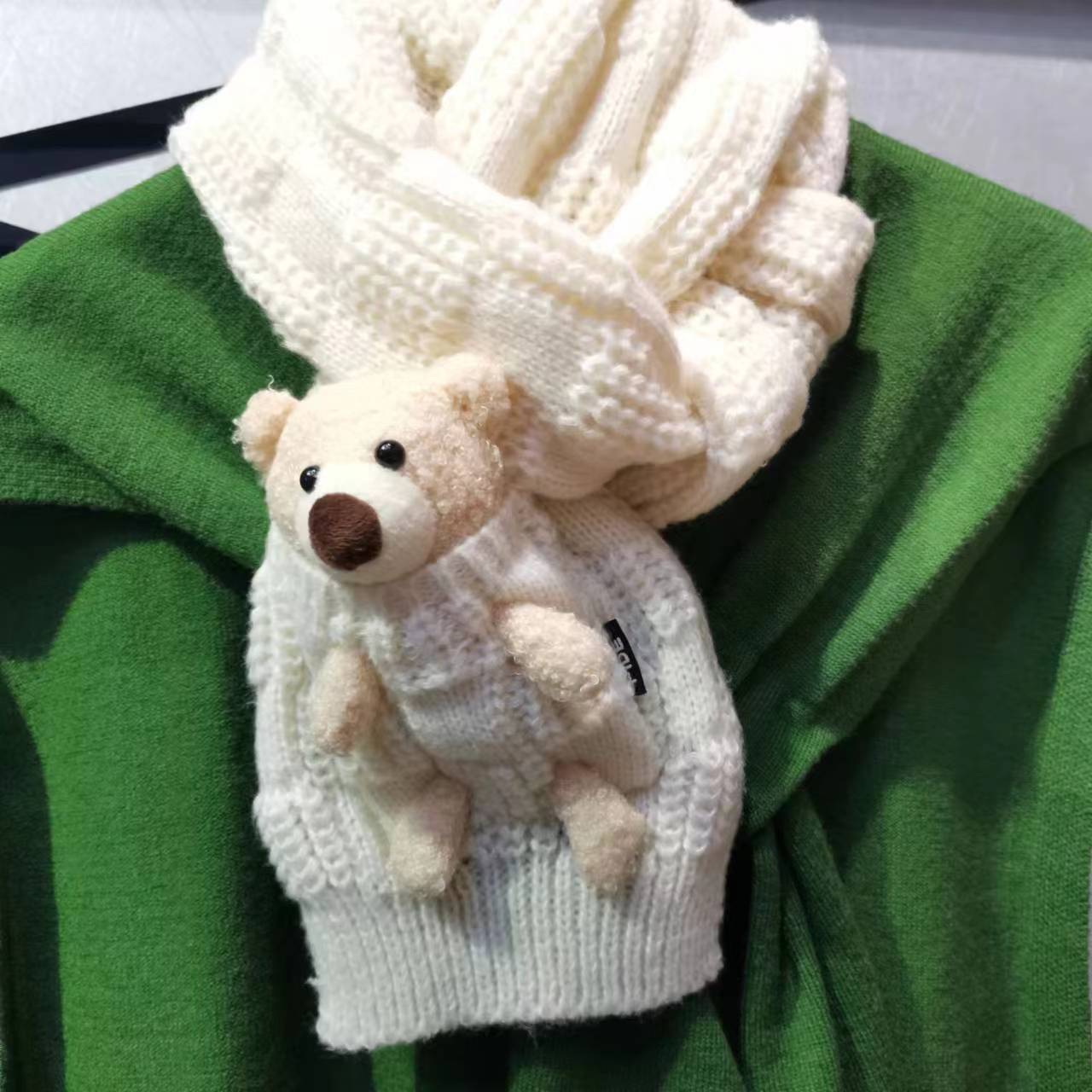 Detachable pocket Kawaii Bear scarf, cute and sweet Korean version woolen knitted scarf for girls, warm for students in autumn and winter