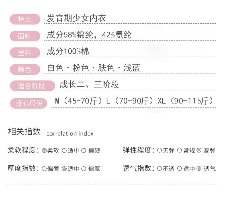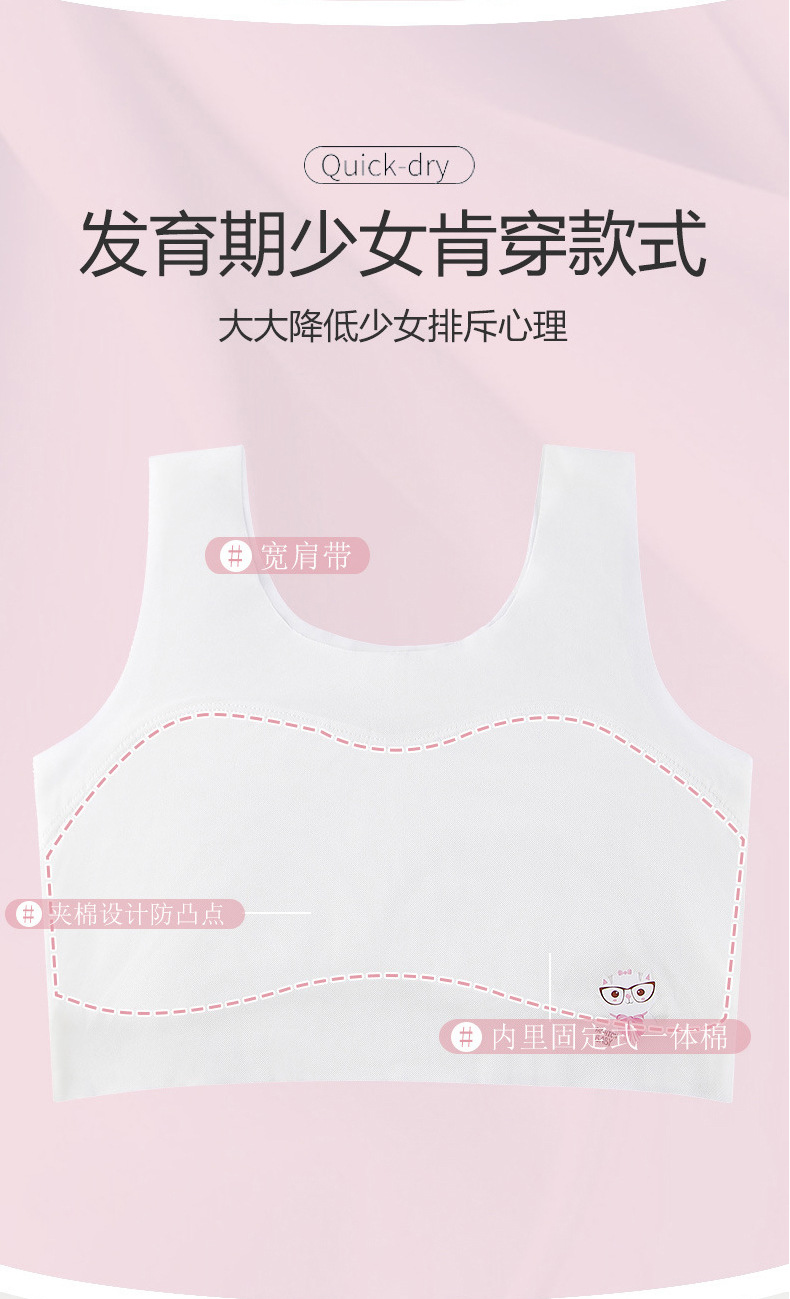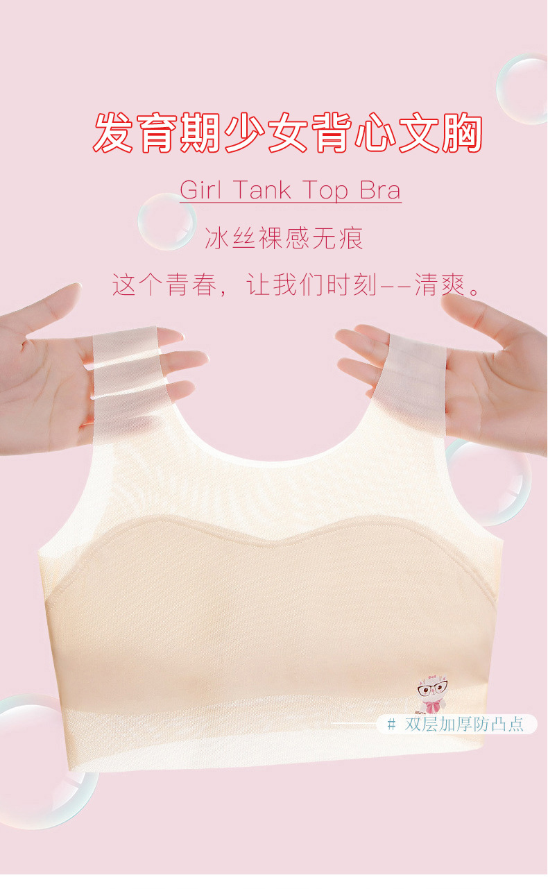 Developmental girls' bras, 8-16 years old children's anti-protrusion, primary and secondary school students' underwear, ice silk seamless breathable vest style