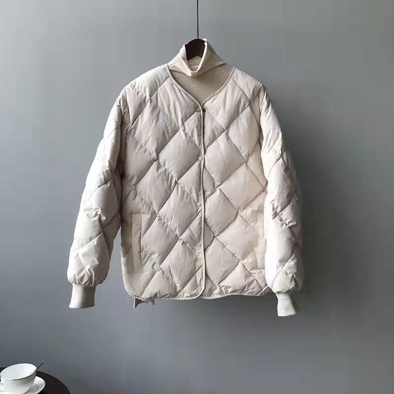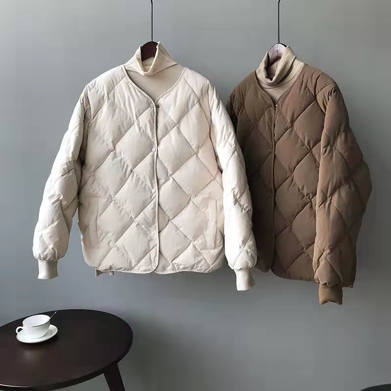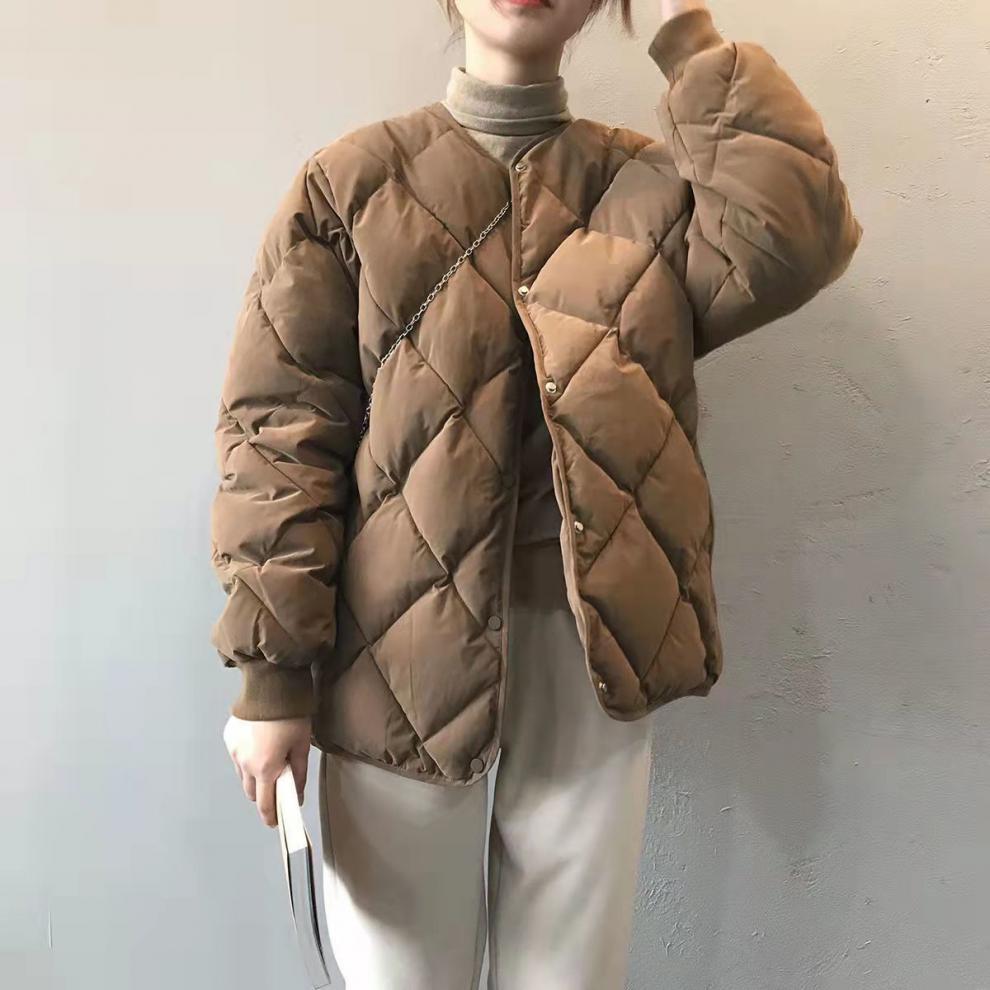 Diamond-patterned cotton-padded jackets for women's winter 2022, new breadwear, best-selling down cotton collarless cotton-padded jackets, short cotton-padded jackets