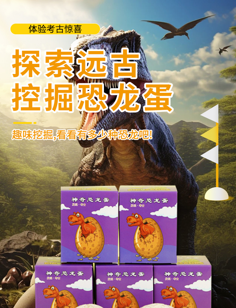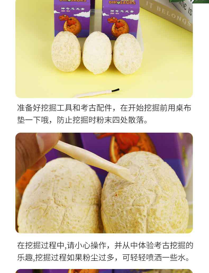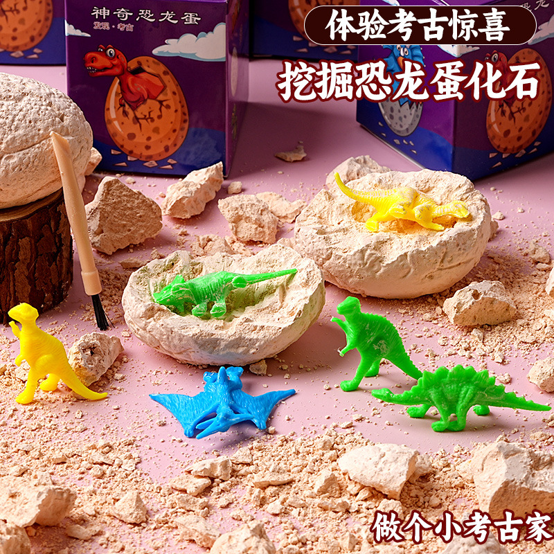 Archaeological dinosaur eggs, individually packaged in color boxes. One set includes one color box, one archaeological excavation tool, and one dinosaur egg!! A box of 350!!