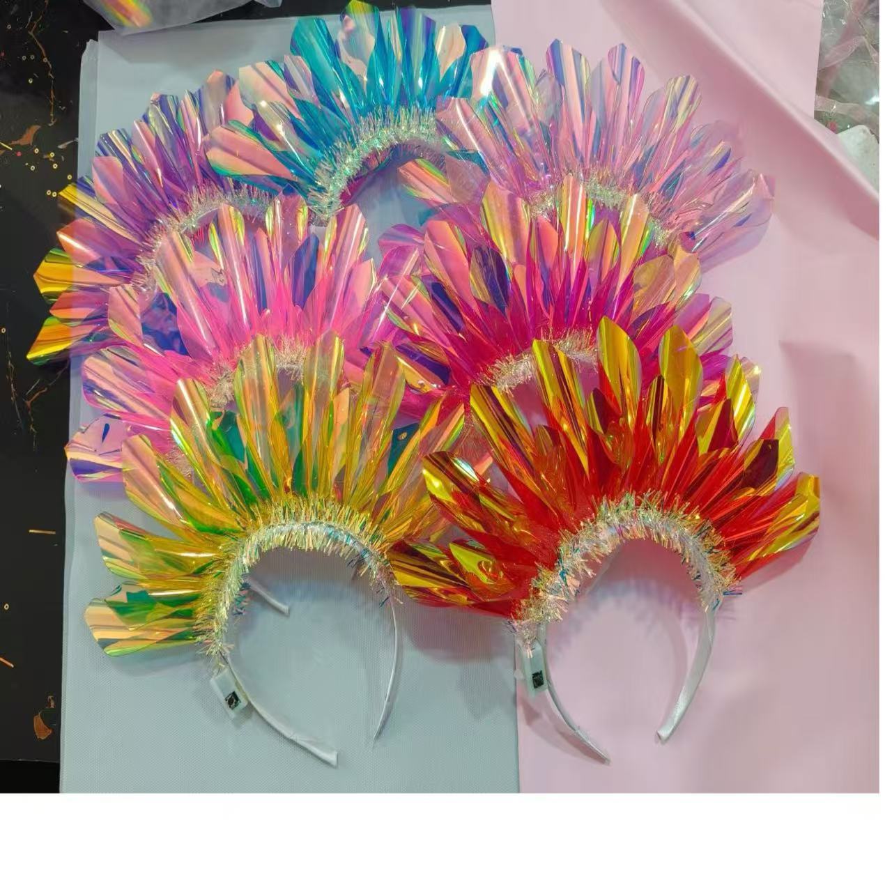 Direct sales of laser luminous headbands from cross-border manufacturers in Europe and America. Wholesale of stage, evening and performance decoration color film luminous headbands