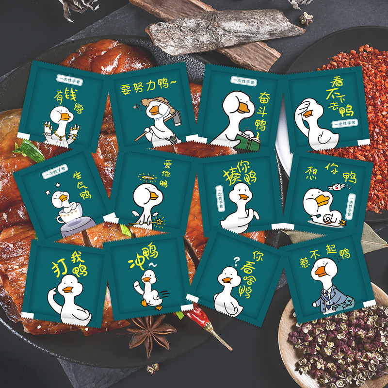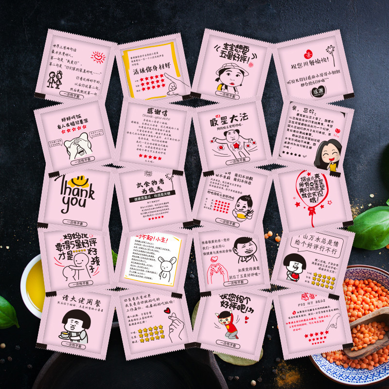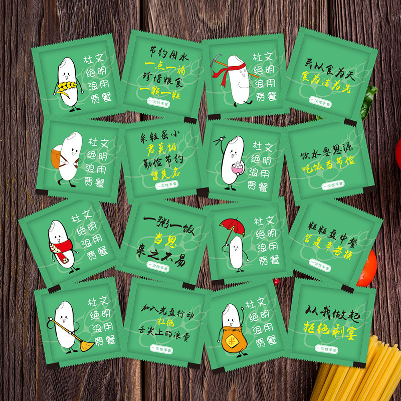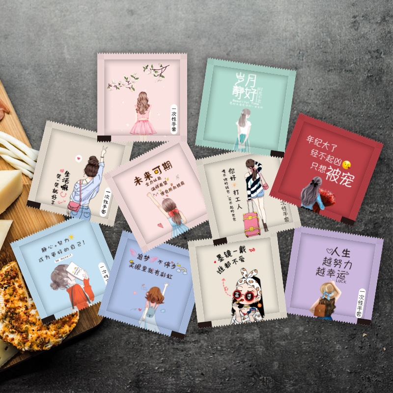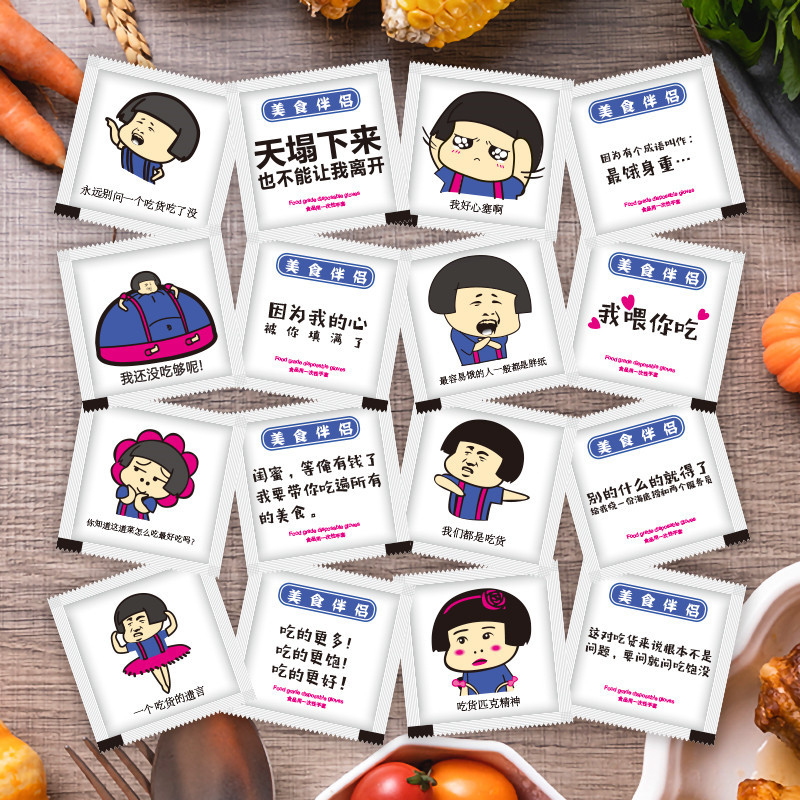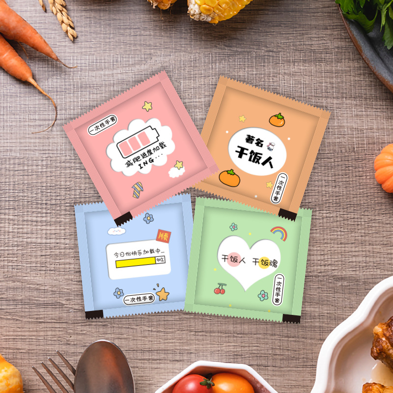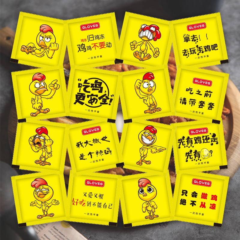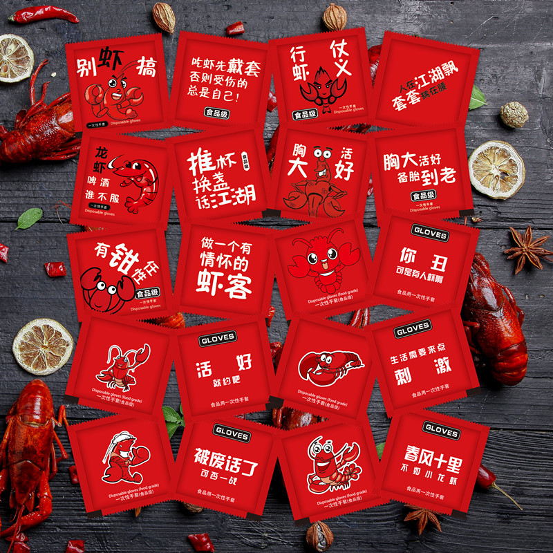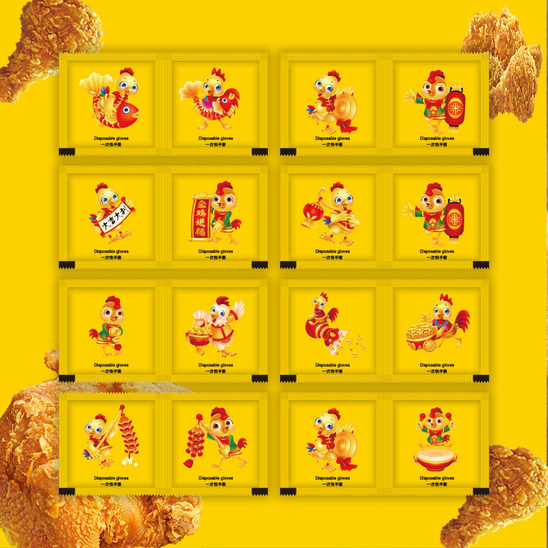Disposable gloves, individually packaged thickened food and catering, fried chicken, lobster, PE gloves, creative printing log