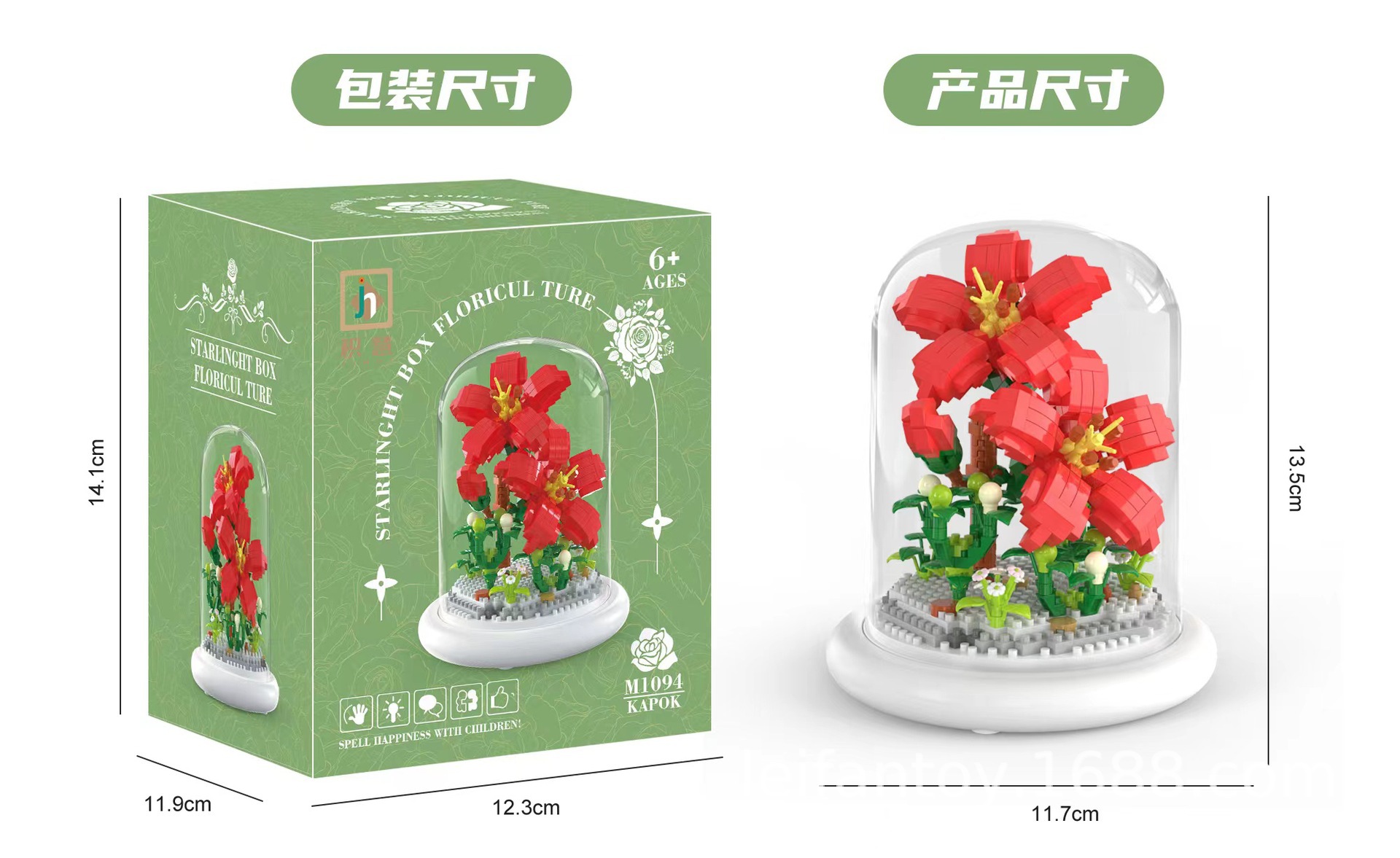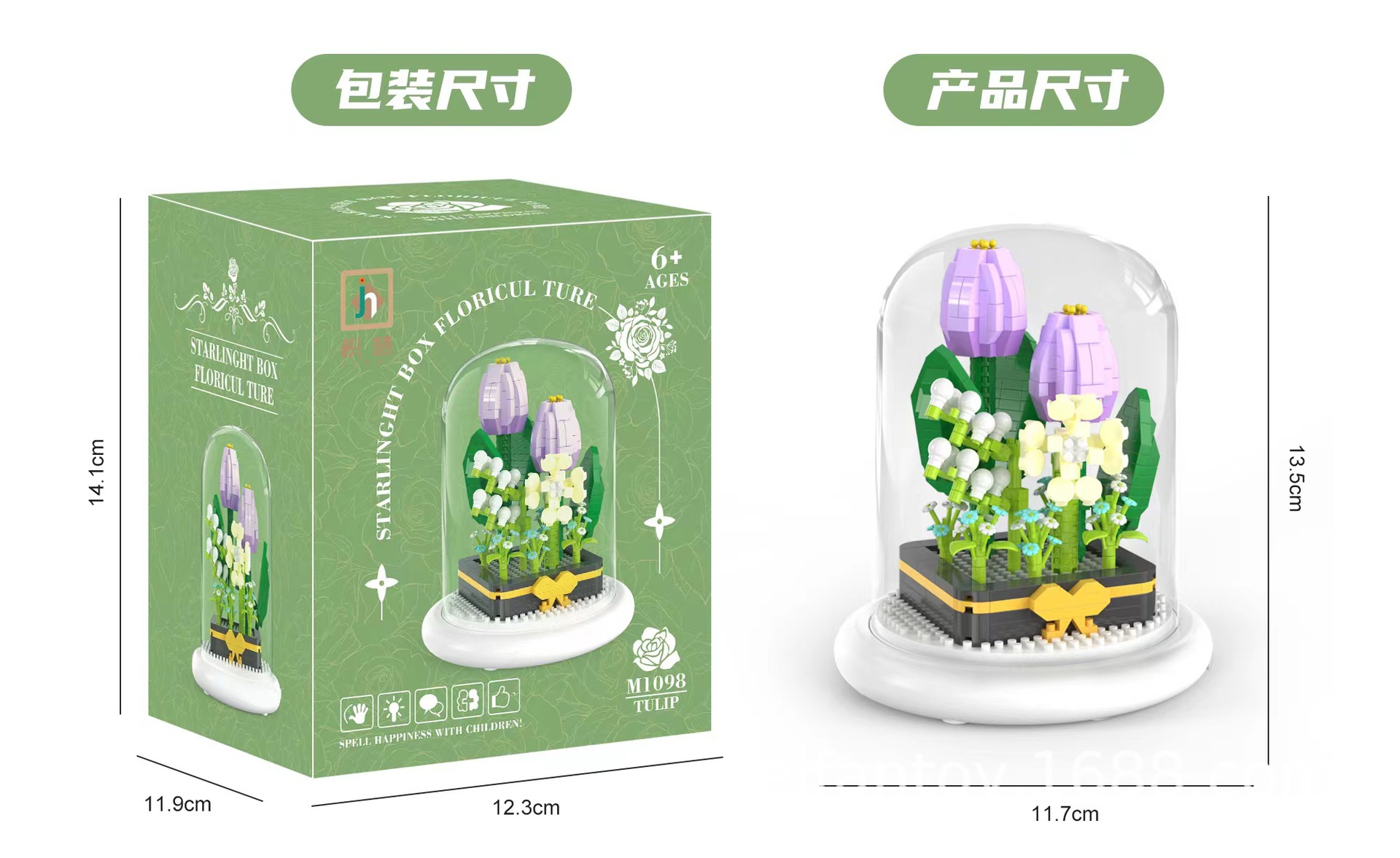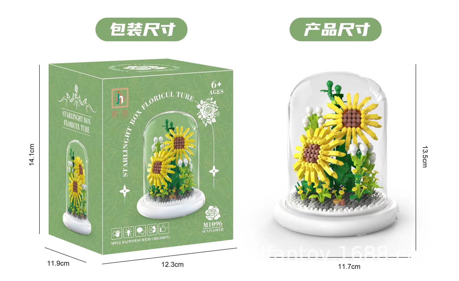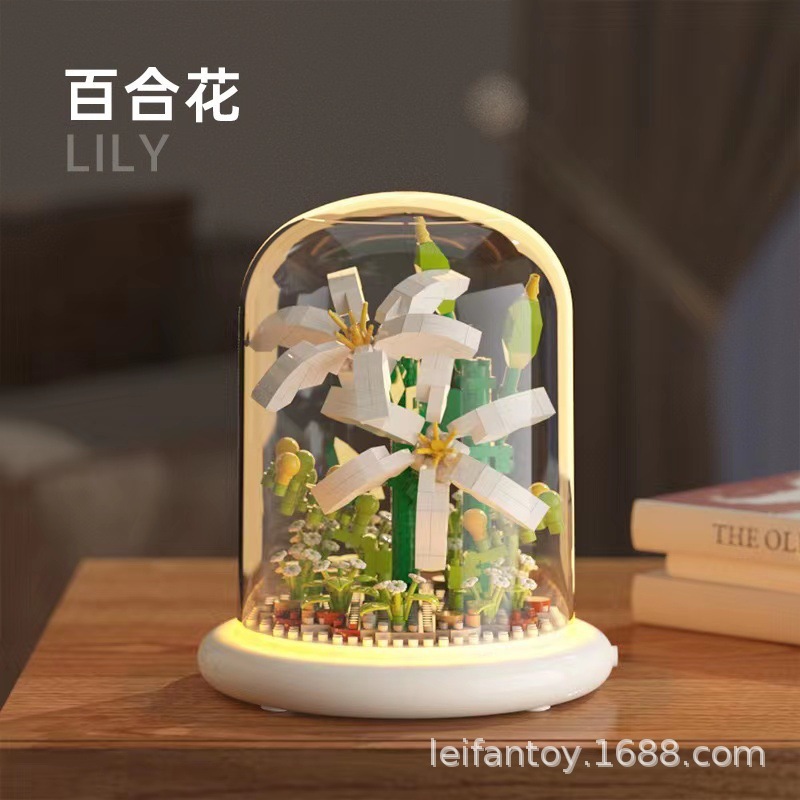 DIY children's building block flower toys, small particle night light building block ornaments, sunflower everlasting flower building block toys