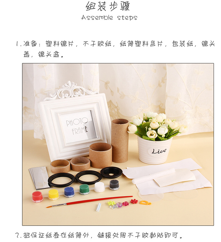 diy colored paper kaleidoscope rotating cylinder science popularization and education equipment assembly Children's art and craft kaleidoscope materials for intelligence
