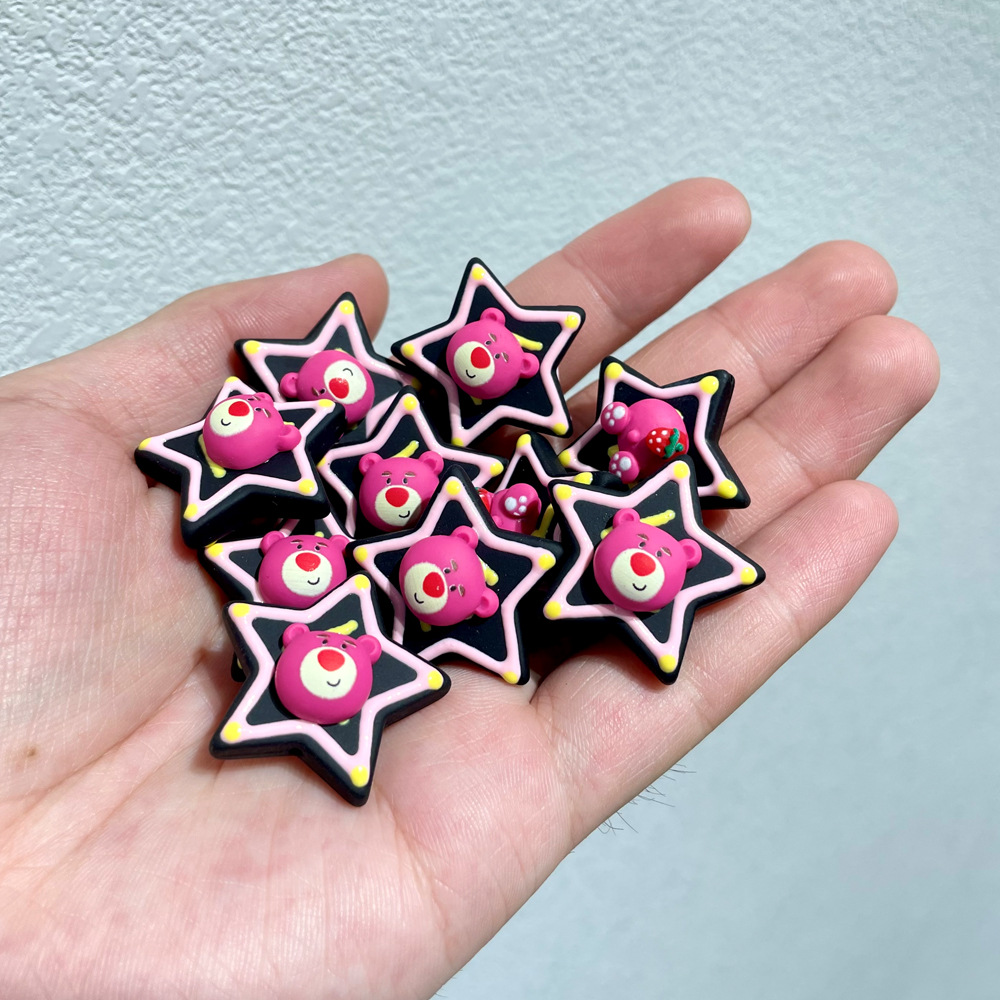 DIY dopamine hand-painted beads, colorful hand-painted bears, stars, flowers, handcrafted beads, oil-dripping beads, handcrafted loose beads