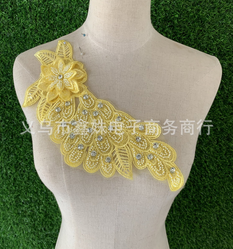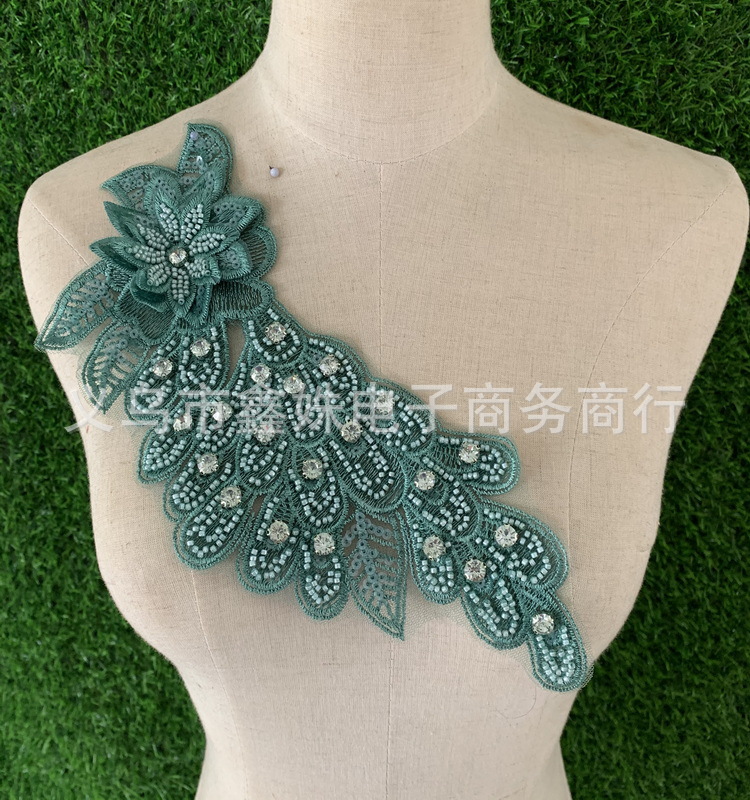 DIY embroidered rhinestone peacock feather corset with applique sequins and patch dance costume accessories