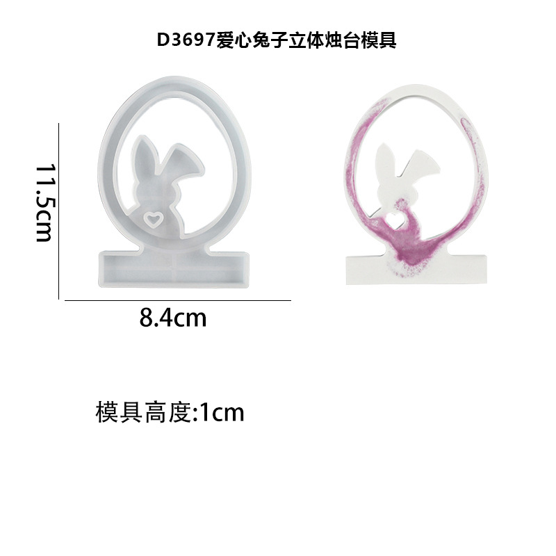 D3697 Heart-shaped Rabbit Three-dimensional Candlestick Mold + Three-dimensional Candlestick base mold
