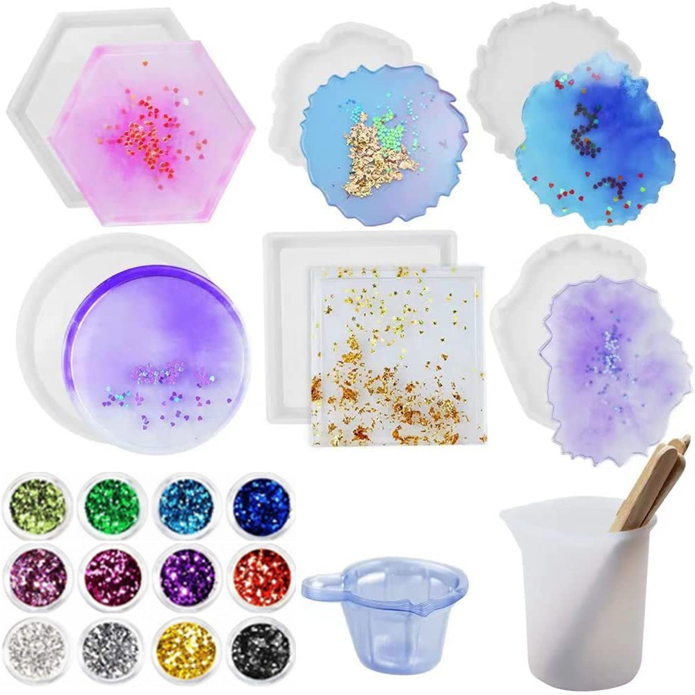 diy epoxy resin resin resin resin mold tools, square, round, wavy coasters, silicone molds