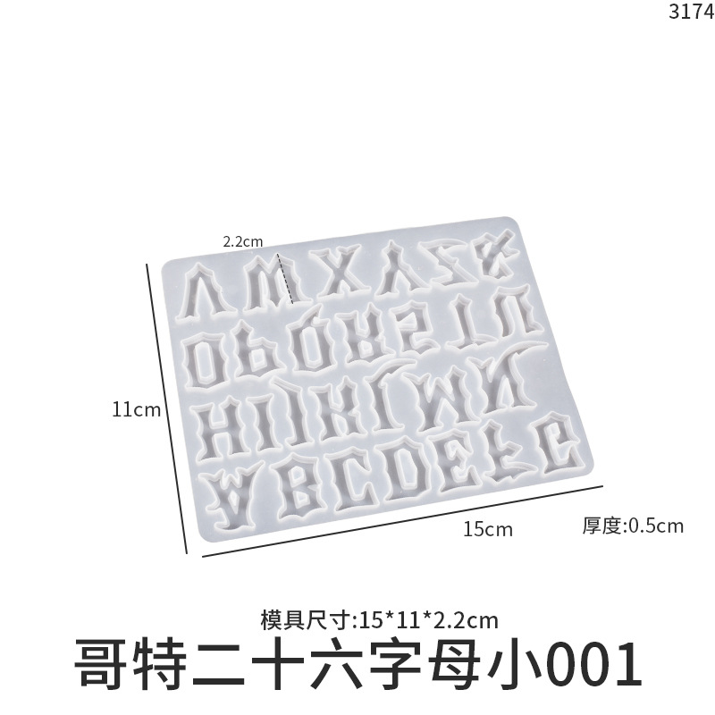 diy Gothic irregular-shaped English 26-letter full plate silicone mold for scented incense pendant keychain
