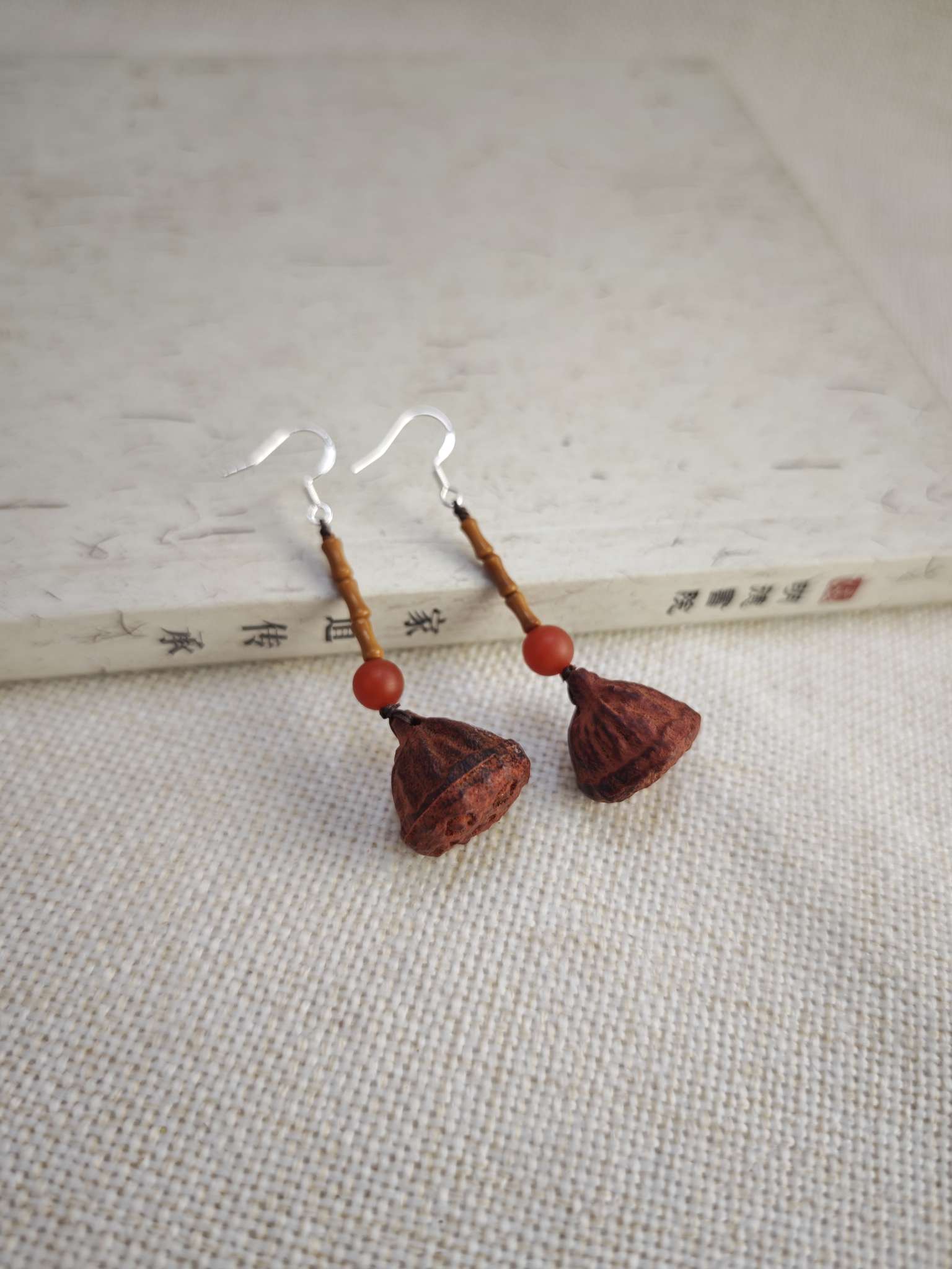 DIY handcrafted beads made of sandalwood lotus pods, olives and bamboo joints