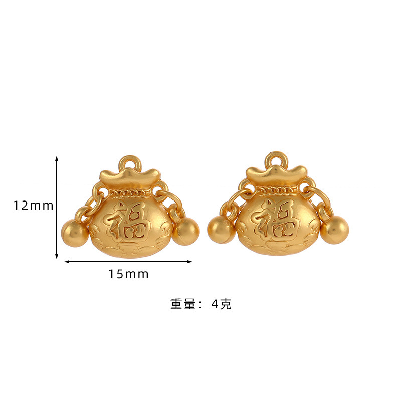 DIY handcrafted sand-gold blue "Fu" character rattle drum, swing drum pendant accessories, lucky bags, necklaces, bracelets and other accessories wholesale