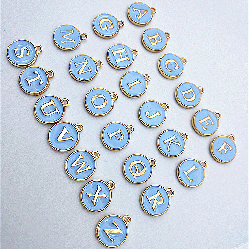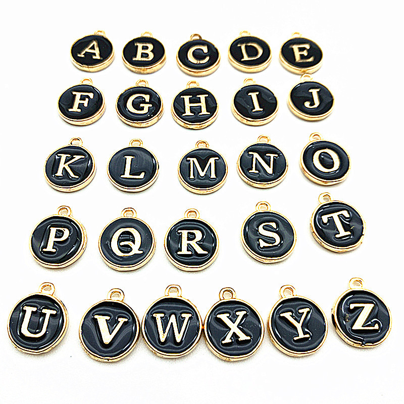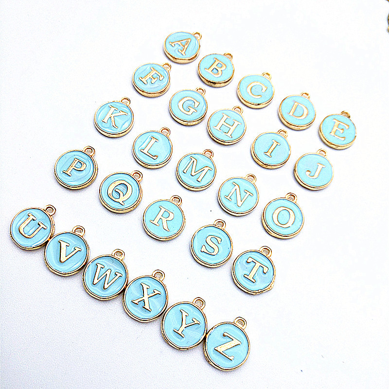 DIY jewelry accessory alloy double-sided oil drip multi-color English 26-letter randomly mixed pendant hanging
