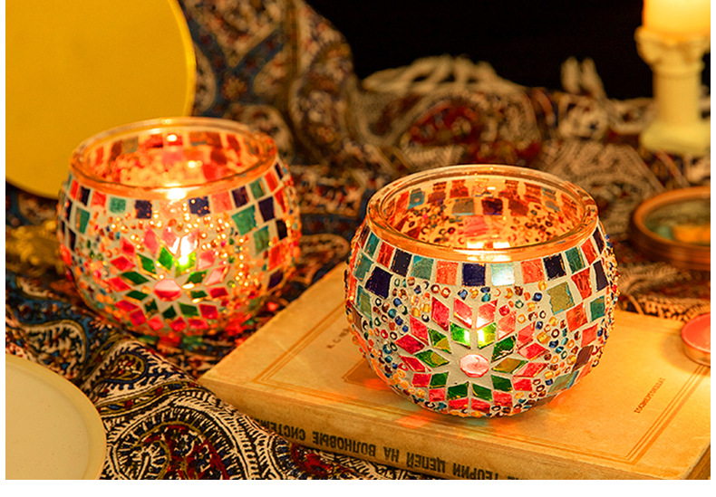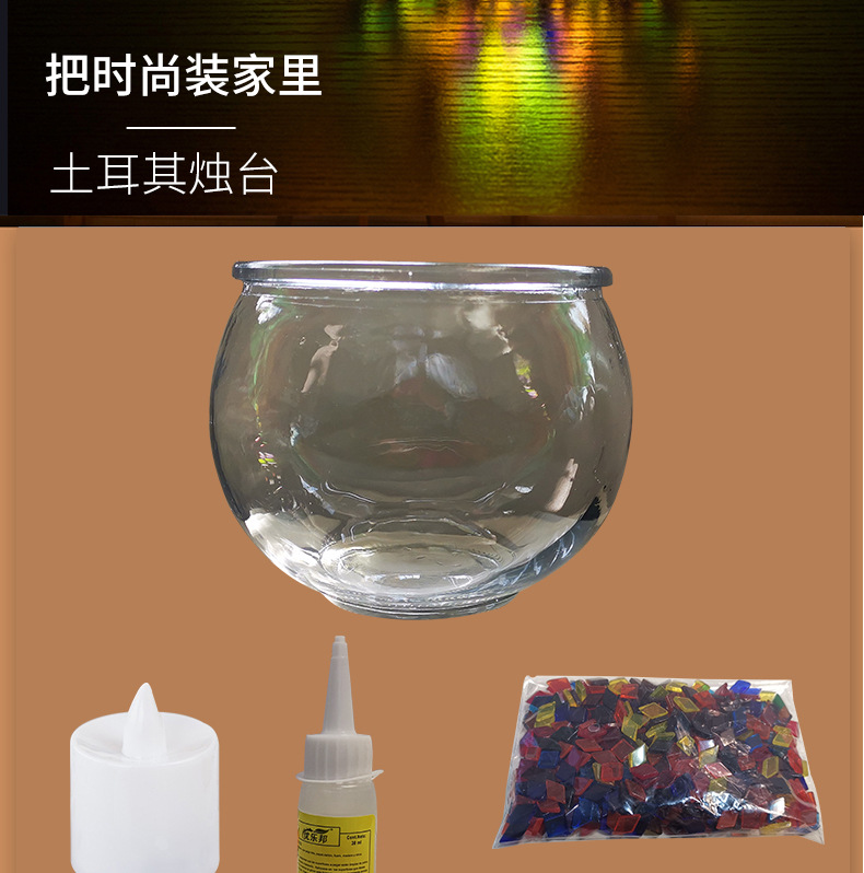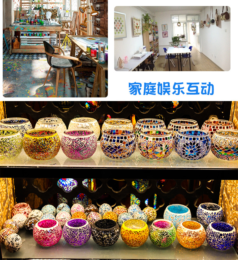 DIY Mosaic candlestick handicraft material package, Turkish glass lamp, children's parent-child interactive warm-up activity gift