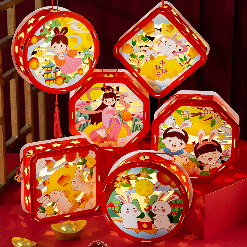 DIY paper lanterns, cartoon projections, palace lanterns, Chang 'e and Jade rabbit handmade material packages, creative glowing gifts for the Mid-Autumn Festival