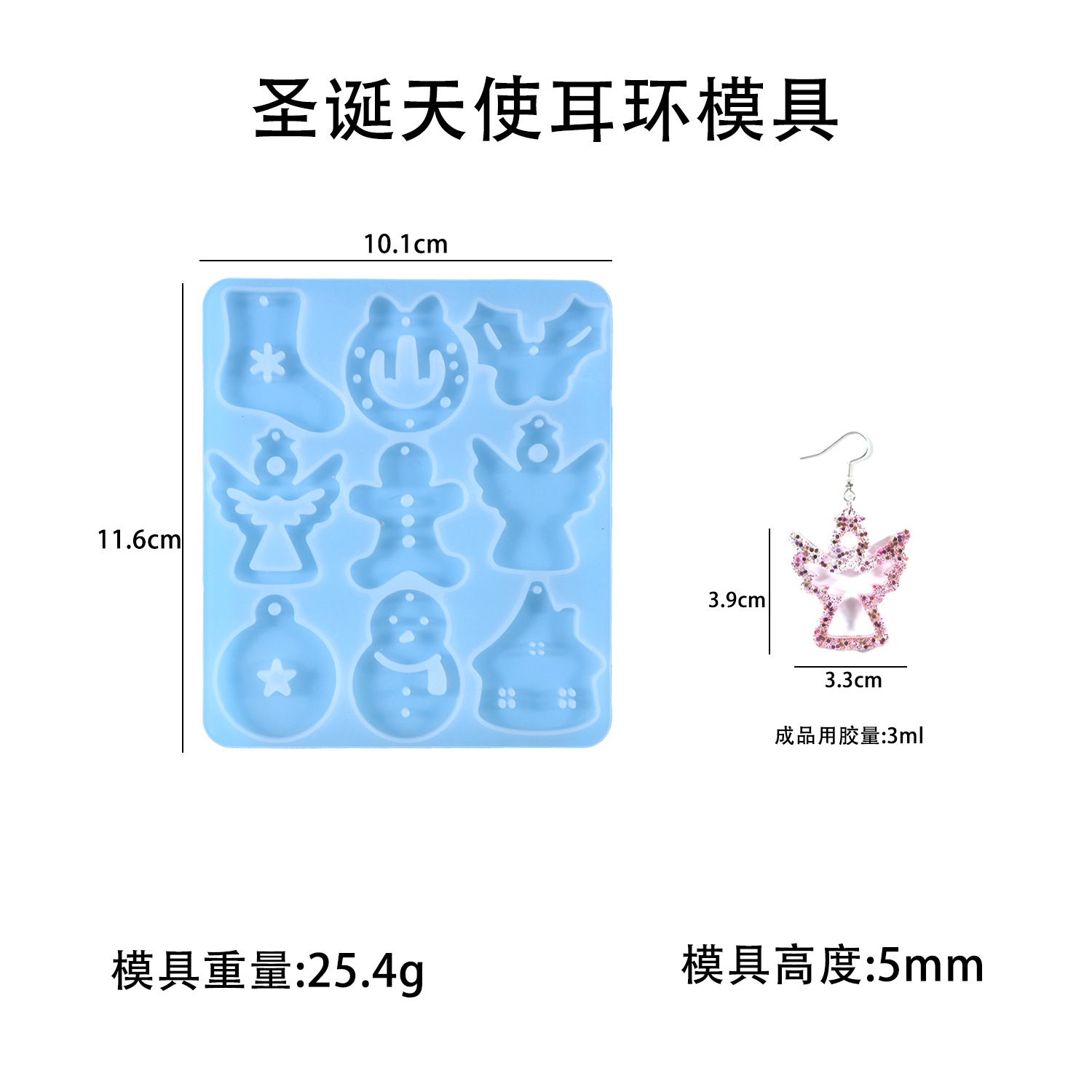 diy resin mold Christmas Angel earrings Silicone mold Personalized cartoon earrings cross-border exclusive supply