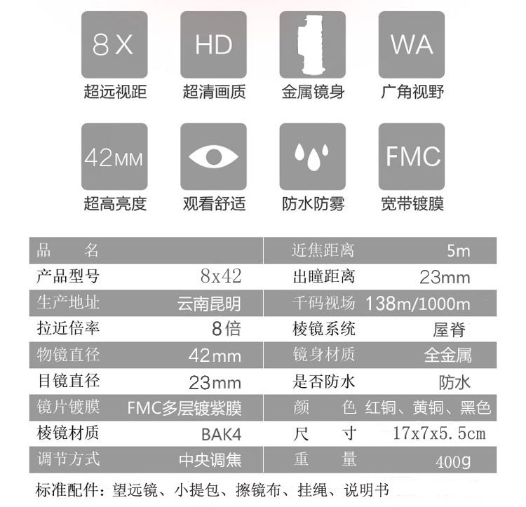 Doctor's Outdoor waterproof single-barrel high-definition telescope 10X42 new dual-color optional viewing glasses, low-light wholesale
