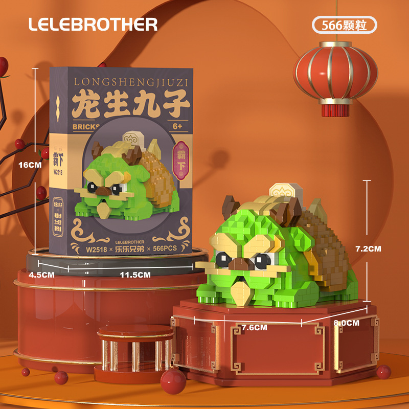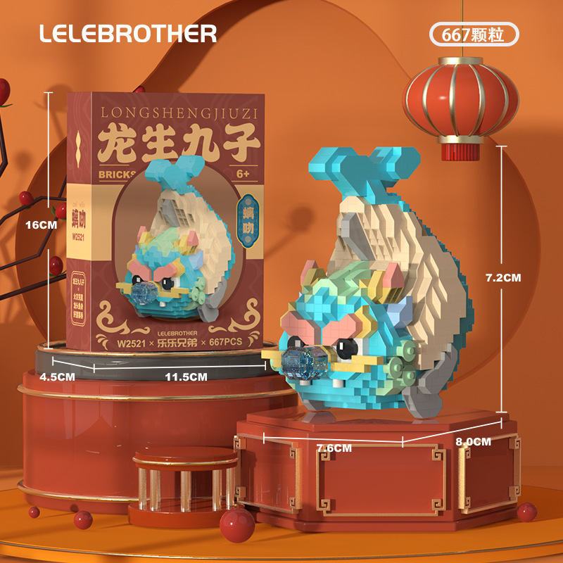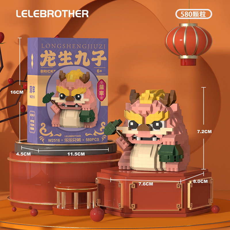 Domestic micro-particle building blocks, Longsheng Nine Sons Qilin, national trend children's educational assembly toys, gifts, ornaments wholesale, national trend