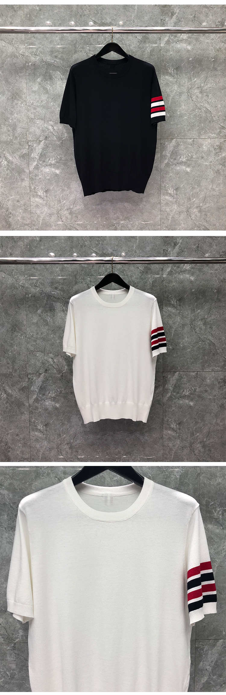Dongguan brand factory direct sales tb sweater men's short-sleeved summer new round neck T-shirt women's knitted sweater T-shirt