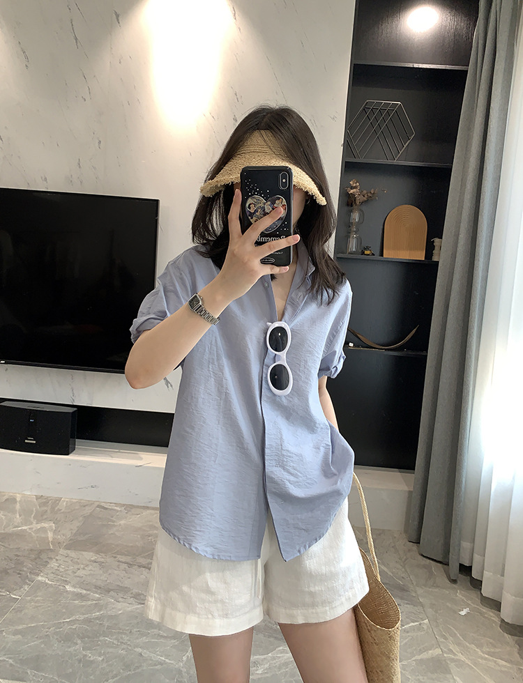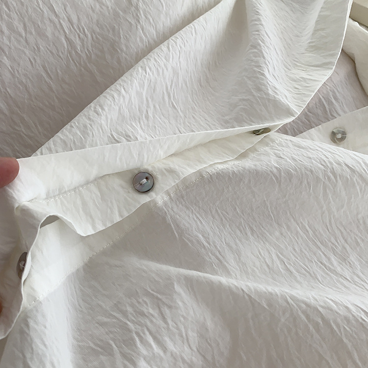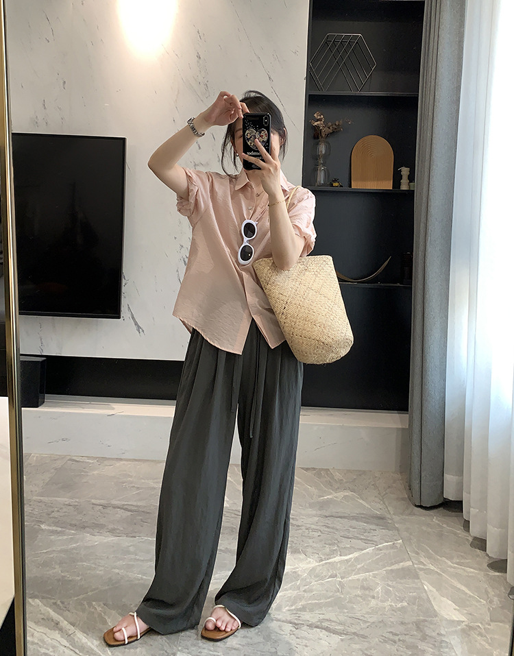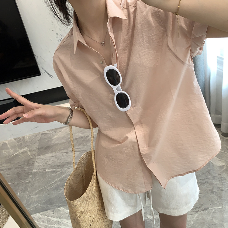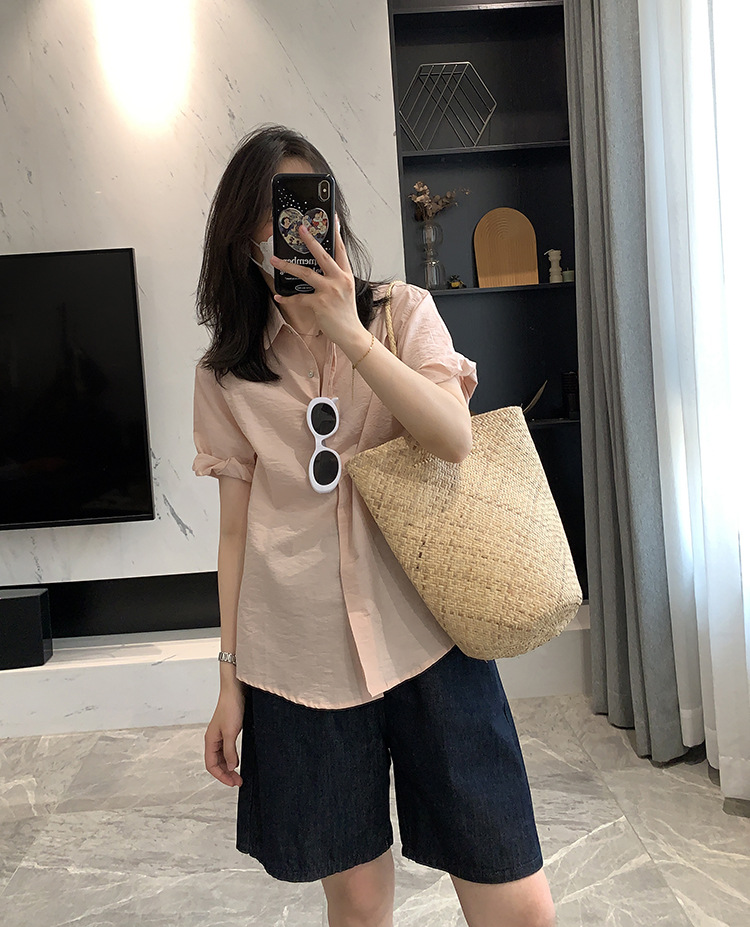 The rolled-up sleeves are a fixed design, making the overall style more stylish