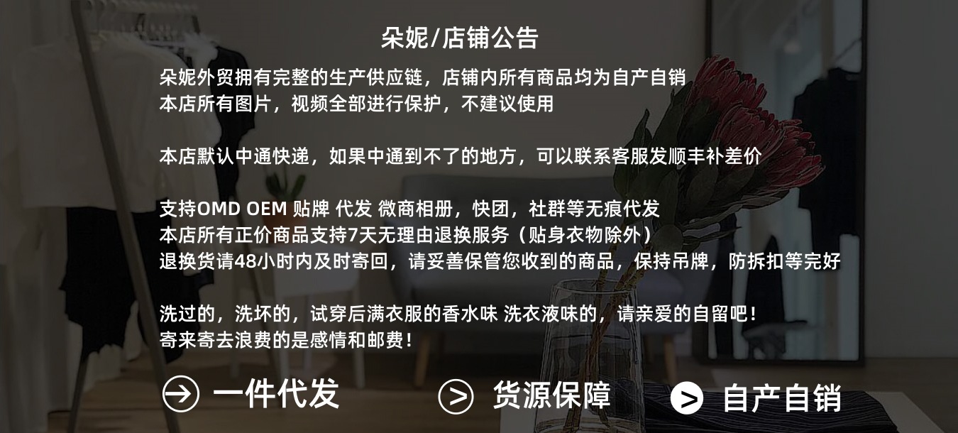 | Washing method: Hand wash with gentle cold water. Do not wash with hot water. Iron at low temperature. Wash and dry immediately. Do not soak. Do not bleach. (Wash clothes of different colors separately to avoid staining.) Lay them flat to dry to prevent deformation. | |||||||