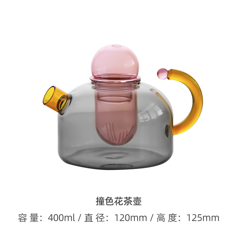 Dopamine color-blocking creative water bottle, thickened household glass teapot, heat-resistant