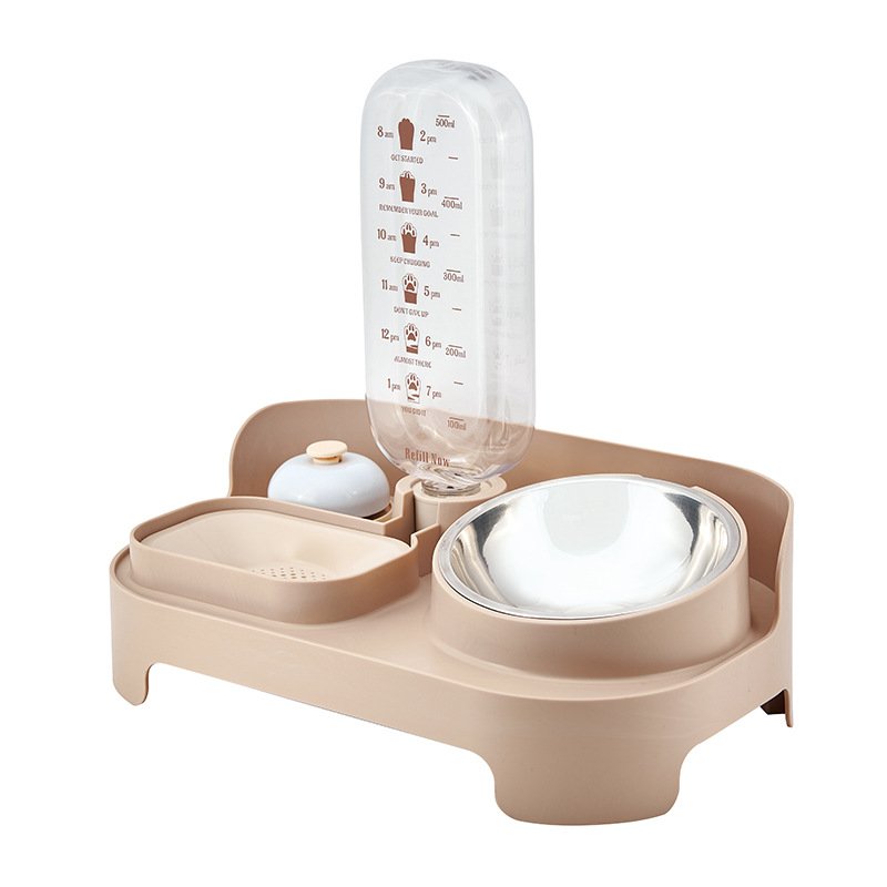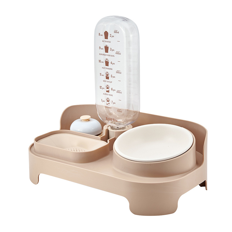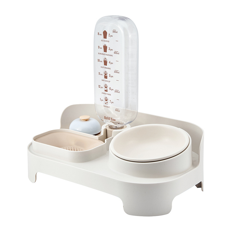 Double-bowl automatic cat water dispenser with live water circulation filtration, large-capacity anti-tipping ceramic dog water bowl for pets