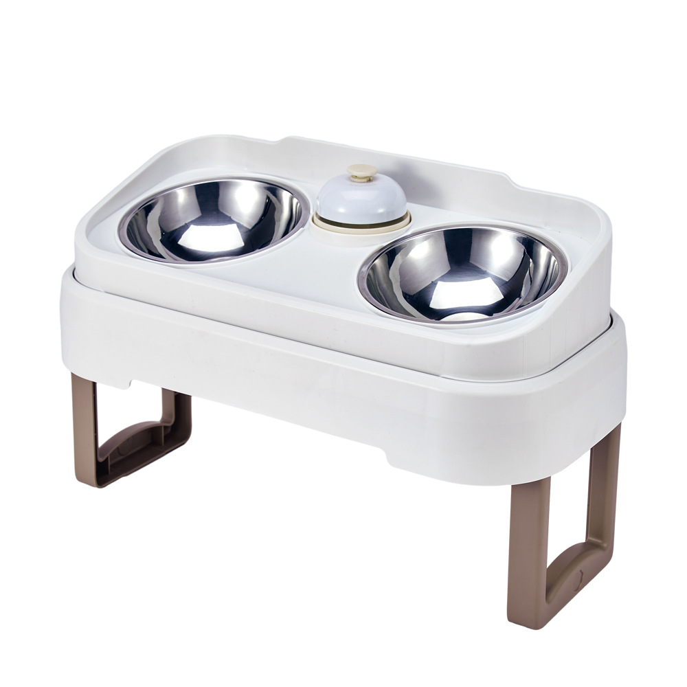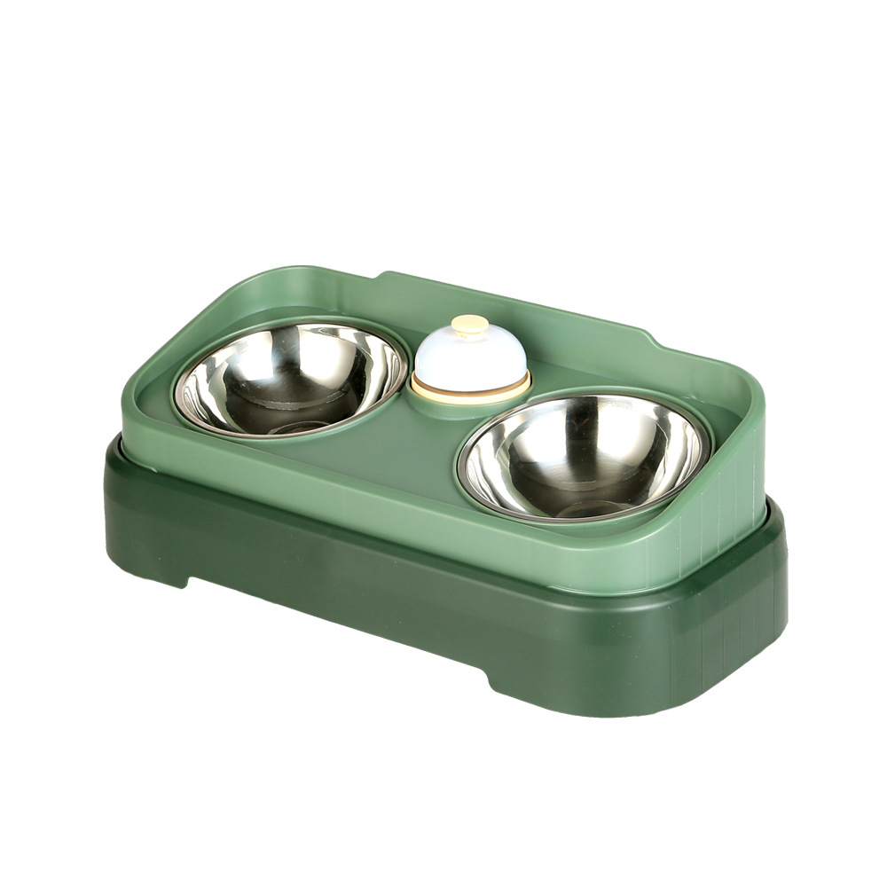 Double bowl for pet feeding, bell call, cat and dog feeding bowl, anti-tipping drinking bowl, dog food bowl, pet baffle design